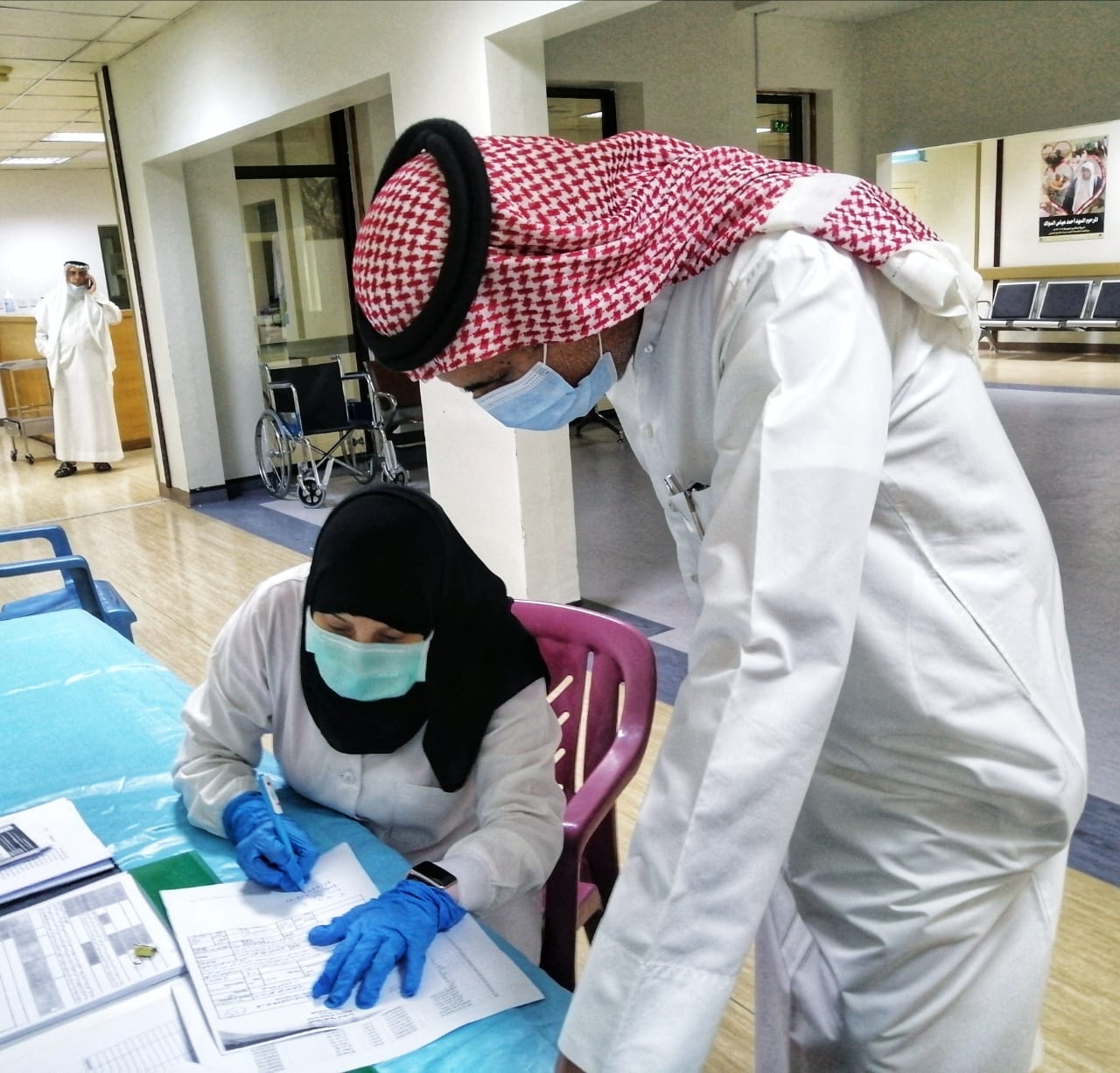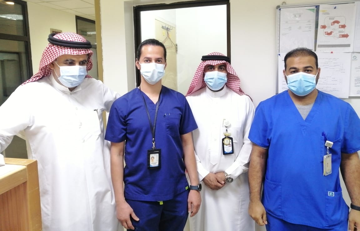 وأكمل الفريق المكون من رئيس قسم الطب المنزلي بمستشفى القطيف المركزي شوقي الصادق، والأخصائي الاجتماعي فاضل المخلوق، والممرضين جاسم أمان، وأحمد المخرق، ورمله المسحر، وزهراء السبع، ومدخل المعلومات والبيانات محمد الجارودي، إعطاء الجرعة الأولى من لقاح ”كورونا“.