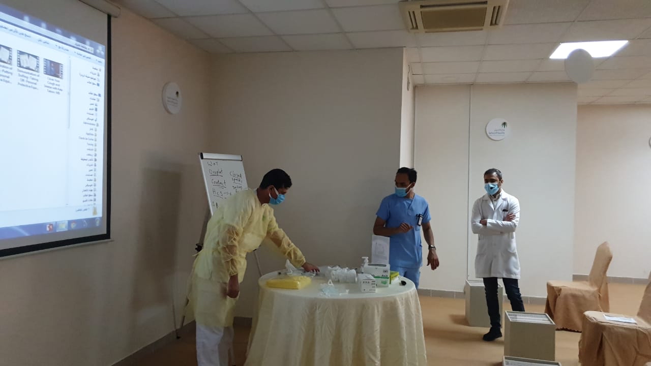 بدوره، شارك رئيس قسم التمريض ومكافحة العدوى بالمركز جميل العلي، بورشة عمل خاصة بتطبيق الطرق الصحيحة عملياً من قبل المشاركين لما تم تقديمة من معلومات، وذلك حرصًا وتأكيدًا على أتباع الطرق والتسلسل الصحيح بتطبيق البرتوكولات بهدف الوقاية من انتقال أي عدوى.