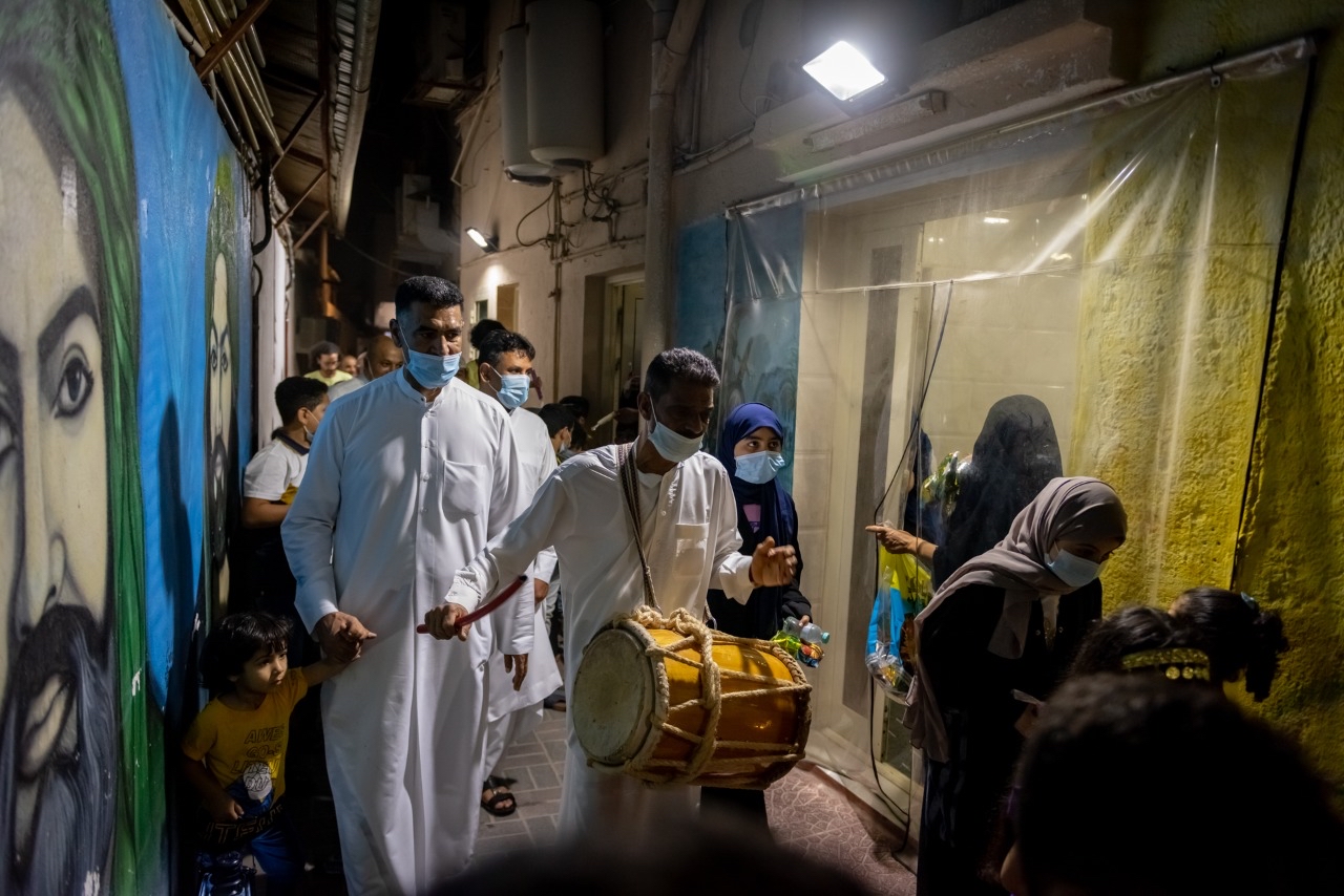ويشارك الأطفال مع المسحر في تظاهرة احتفالية ليالي الوداع وهم يرددون في فرح وسعادة ما يصدح به المسحر من أهازيج وشيلات.
