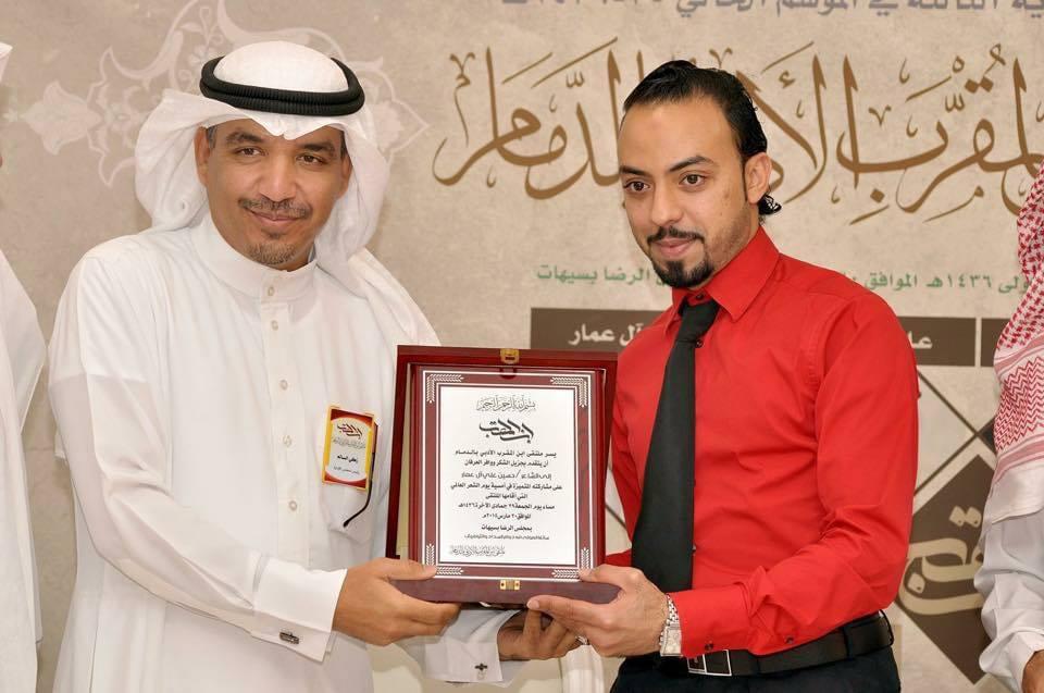 وكان قد ذكر في حديث سابقٍ له أن الجائزة ولكونها تحتفي بالمنجز المقدم من أبناء المنطقة فهي تعطي المكانة المستحقة للمبدع وهذا ما يعلي قيمتها المعنوية من وجهة نظري، الكلام يطول حول ذلك فالحمدلله الجوائز كثيرة ومتعددة والرضا الذاتي عن التجربة هو أكبر جائزة وقد حصلت عليه الحمد لله".