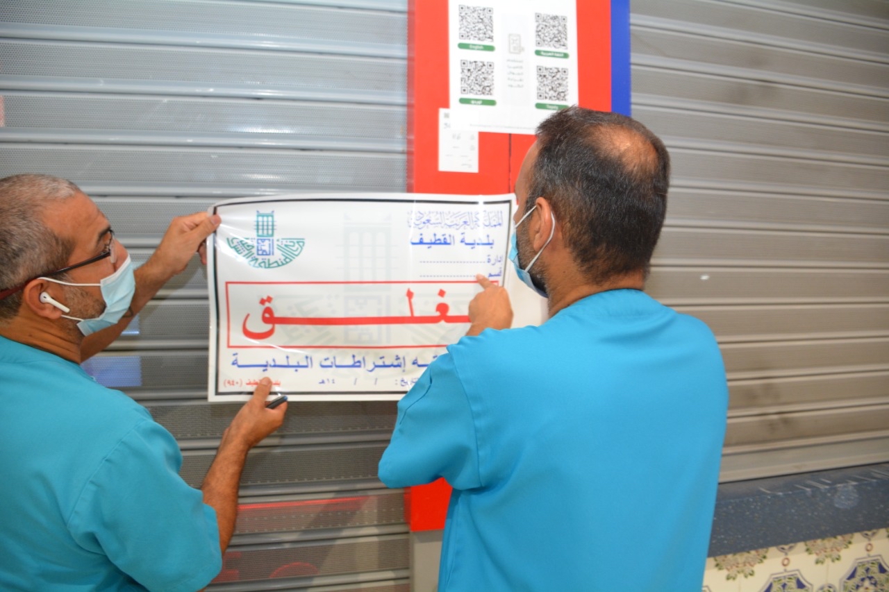 وأكدت الأمانة استمرار جولاتها الرقابية المكثفة وخاصة في عيد الفطر المبارك، على المنشآت التجارية والأسواق المركزية، والتشديد عليها ورصد المخالفات وإغلاق المنشآت المخالفة منها؛ للإجراءات الاحترازية والتدابير الصحية المرتبطة ب ”كورونا المستجد“، والتكدس في الأسواق، إضافة لعدم التزامها بإبراز تطبيق ”توكلنا“، وكذلك تفعيل مبادرة ”ممتثل“ بكافة مدن ومحافظات المنطقة.