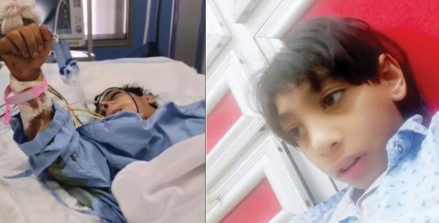 واستطرد عبدالحميد مبيناً بأن ابنه «وهو من فئة ذوي الاحتياجات الخاصة» أدخل الى مستشفى العيون ومن ثم نقل إلى مستشفى الملك فهد بالهفوف لخطورة حالته، حيث أجريت له عمليتين عاجلتين لترقيع مواقع نزف الدم.