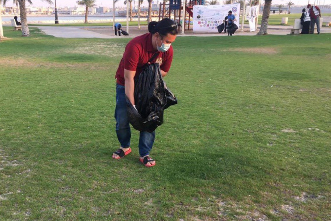 وبدأ أفراد الجالية بمشاركة 200 متطوعا - من خلال صور متداولة على حساب بلدية محافظة القطيف في مواقع التواصل الاجتماعي - وهم يعملون رجالاً ونساءً بشكل جماعي ويحملون أكياس النفايات والمكانس وينظفون المسطحات الخضراء والأرصفة على الكورنيش.
