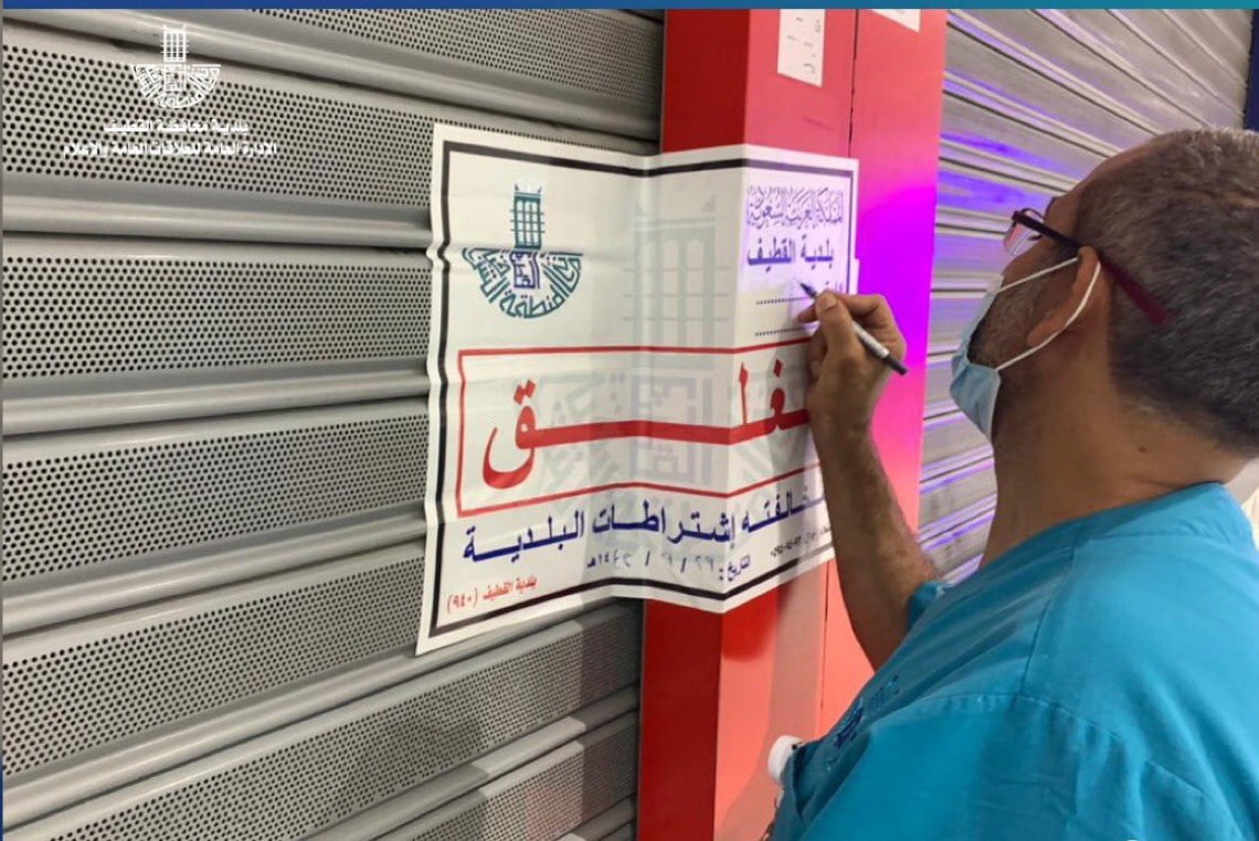 وأكدت الأمانة استمرار جولاتها الرقابية المكثّفة، وخاصة في أيام عيد الأضحى المبارك، للتثبّت من تطبيق التدابير الصحية والإجراءات الاحترازية، مع تشديدها بضرورة التقيد بالأنظمة الوقائية، للمنشآت التجارية، والأسواق، والمراكز، ومتابعتها، وكذلك تطبيق الاشتراطات البلدية، ورفع المستوى التوعوي لجميع المنشآت بالمنطقة، وكذلك تفعيل مبادرة ”ممتثل“ بكافة مدن ومحافظات المنطقة، وأبانت الأمانة بأنها تعمل على تعزيز الجانب التوعوي والرقابي.
