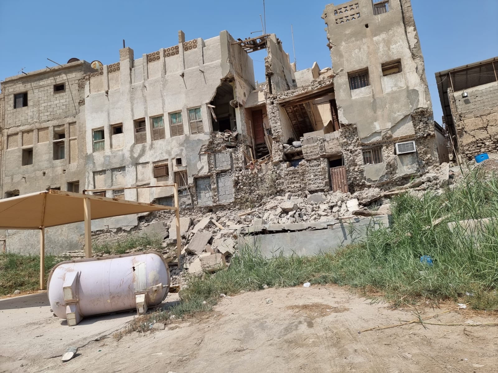 وذكر شهود عيان لصحيفة جهينة الإخبارية ان المنزل الكائن بجوار مسجد الرفعة والمكون من طابقين، انهار بشكل كامل، مما تسبب في تصدع بعض المنازل المجاورة وسقوط بعض الأجزاء من المنازل الأخرى.