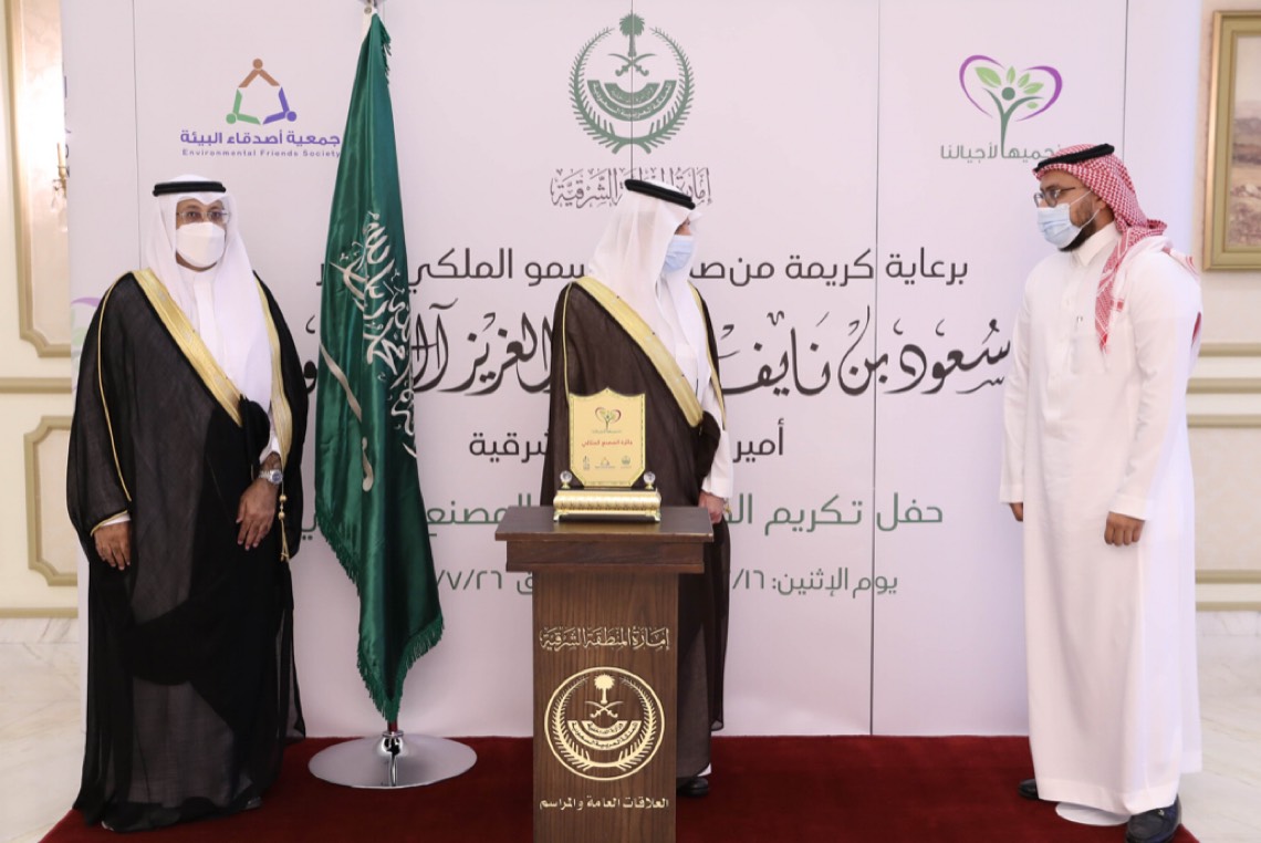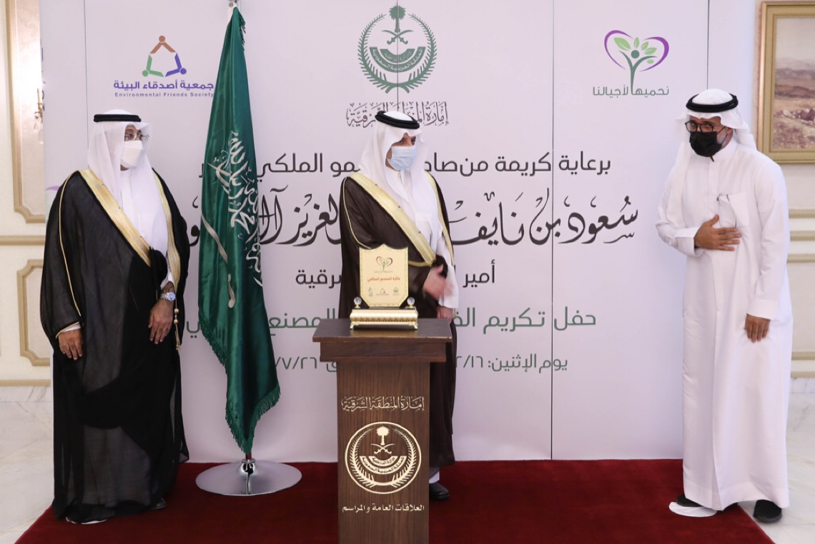 جاء ذلك خلال تكريم أمير الشرقية بديوان الامارة اليوم الإثنين المصانع الفائزة بجائزة ”المصنع المثالي“ التي نظمتها جمعية أصدقاء البيئة والهادفة إلى الالتزام بالبيئة والحفاظ على البيئة الداخلية والخارجية للمصانع والحد من التلوث.