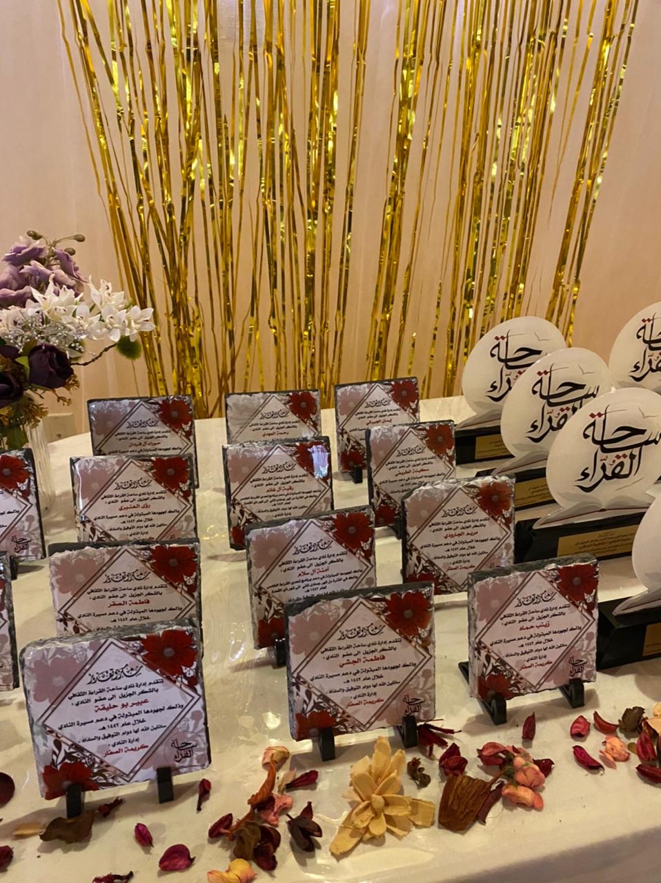 واختتم الحفل بتكريم العضوات المنجزات في برنامج تحدي القراءة، وهن ”فاطمة الجشي، زهراء البيات، فاطمة البيك، رقية ال غانم، رحمة المهدي، سكينة الطريفي، مريم الجارودي، زينب حماد، رؤى العنبري“.