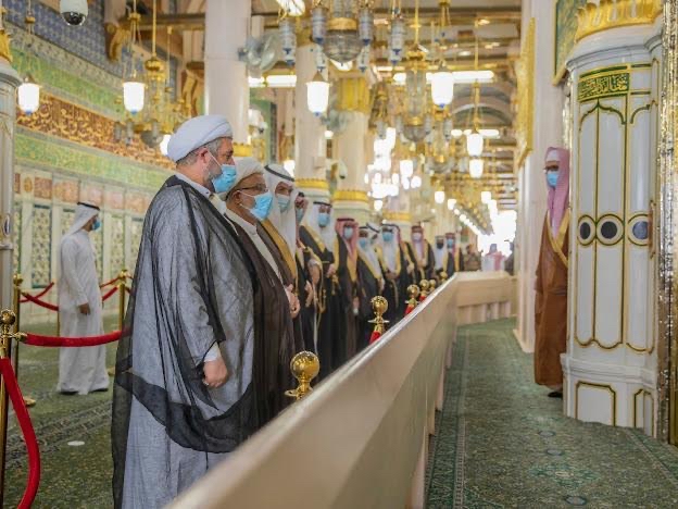 وفي ختام الزيارة، وجّه الشيخ منصور السلمان والشيخ حسين العباس بالأصالة عن نفسيهما وعن جميع أعضاء الوفد؛ الشكر الجزيل لصاحب السمو الملكي أمير المدينة المنورة الأمير فيصل بن سلمان بن عبدالعزيز آل سعود، على كل ما لمسوه خلال الزيارة من رعاية واهتمام بخدمة زوار المسجد النبوي وفق تطلعات وتوجيهات حكومة خادم الحرمين الشريفين الملك سلمان بن عبدالعزيز آل سعود وسمو ولي العهد الأمين، وكذلك الشكر الجزيل لوكالة رئاسة الحرم النبوي بقيادة الرئيس العام لشؤون الحرمين الدكتور عبدالرحمن السديس على الخدمات الجليلة التي تقدمها، سائلين الله سبحانه وتعالى أن يديم على وطننا الغالي نعمة الأمن والأمان.