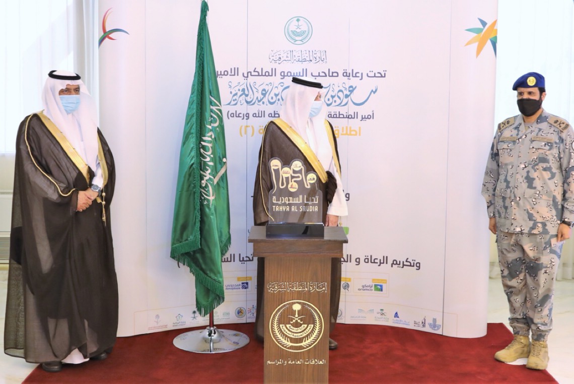 جاء ذلك خلال تكريمه بديوان الإمارة، اليوم، المشاركين في مبادرة «تحيا السعودية 1» والتي أقيمت في اليوم الوطني للمملكة 90، وأطلق النسخة الثانية من المبادرة والتي ستقام بالتزامن مع اليوم الوطني 91، واطلع على ما سيتم تنفيذه من أنشطة وبرامج خلال المبادرة.