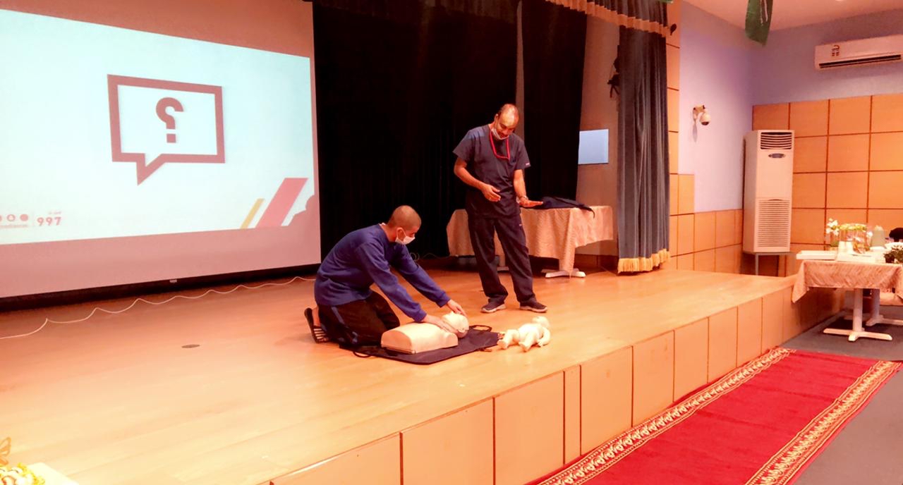 وتضمنت الدورة مبادى الإسعافات الأولية والإنعاش القلبي الرئوي، إضافة إلى الإسعافات الأولية الواجب تنفيذها عند حدوث حالة اختناق لدى البالغ أو الطفل أو الرضيع، وفي حال الأمراض الطارئة، والطوارىء البيئية، وعند الإصابة بالكسور أو النزيف.