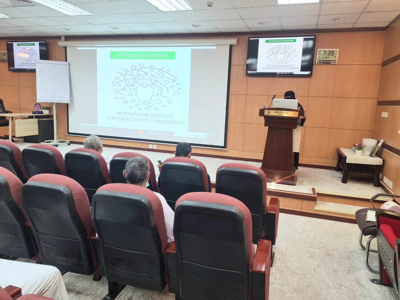 وألقت محاضرة عن هذا الاضطراب تعريفه وتشخيصه والعلامات التي تظهر على الشخص المصاب به، متطرقة لطرق العلاج وسبل التعامل الأمثل مع هذه الحالات.