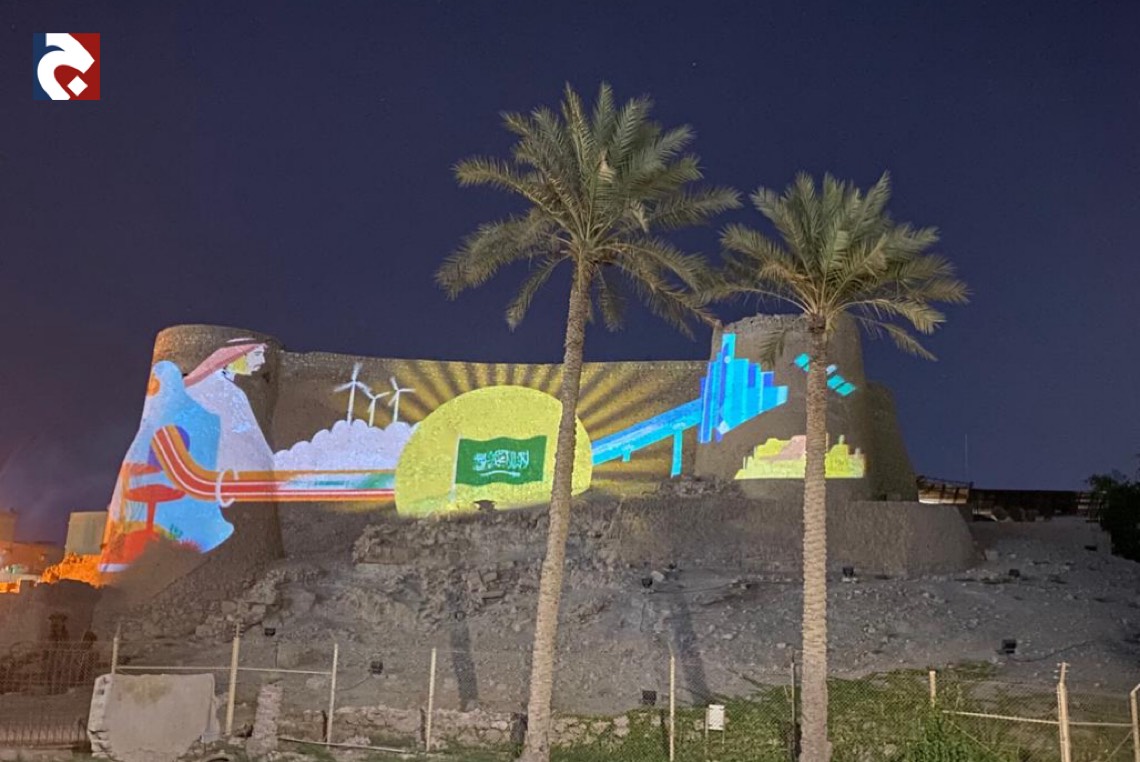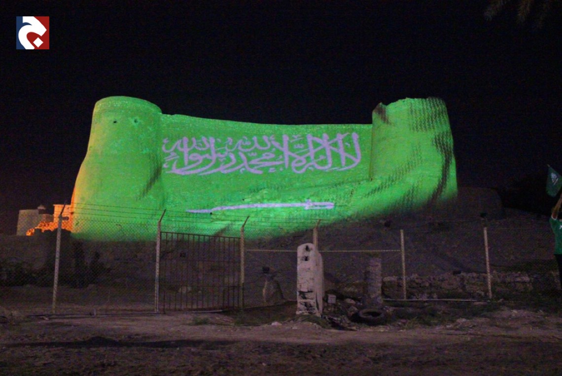 قلعة تاروت تزدان ب ”الأخضر“ احتفالًا باليوم الوطني