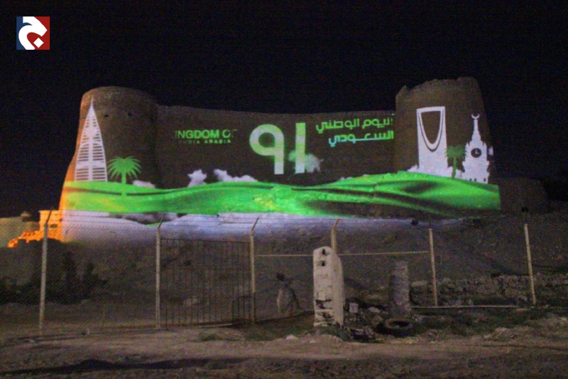 تزينت قلعة تاروت باللون الأخضر، مساء اليوم، وسط مشاركة كثيفة من أهالي القطيف، وذلك ضمن فعاليات الاحتفال باليوم الوطني 91.