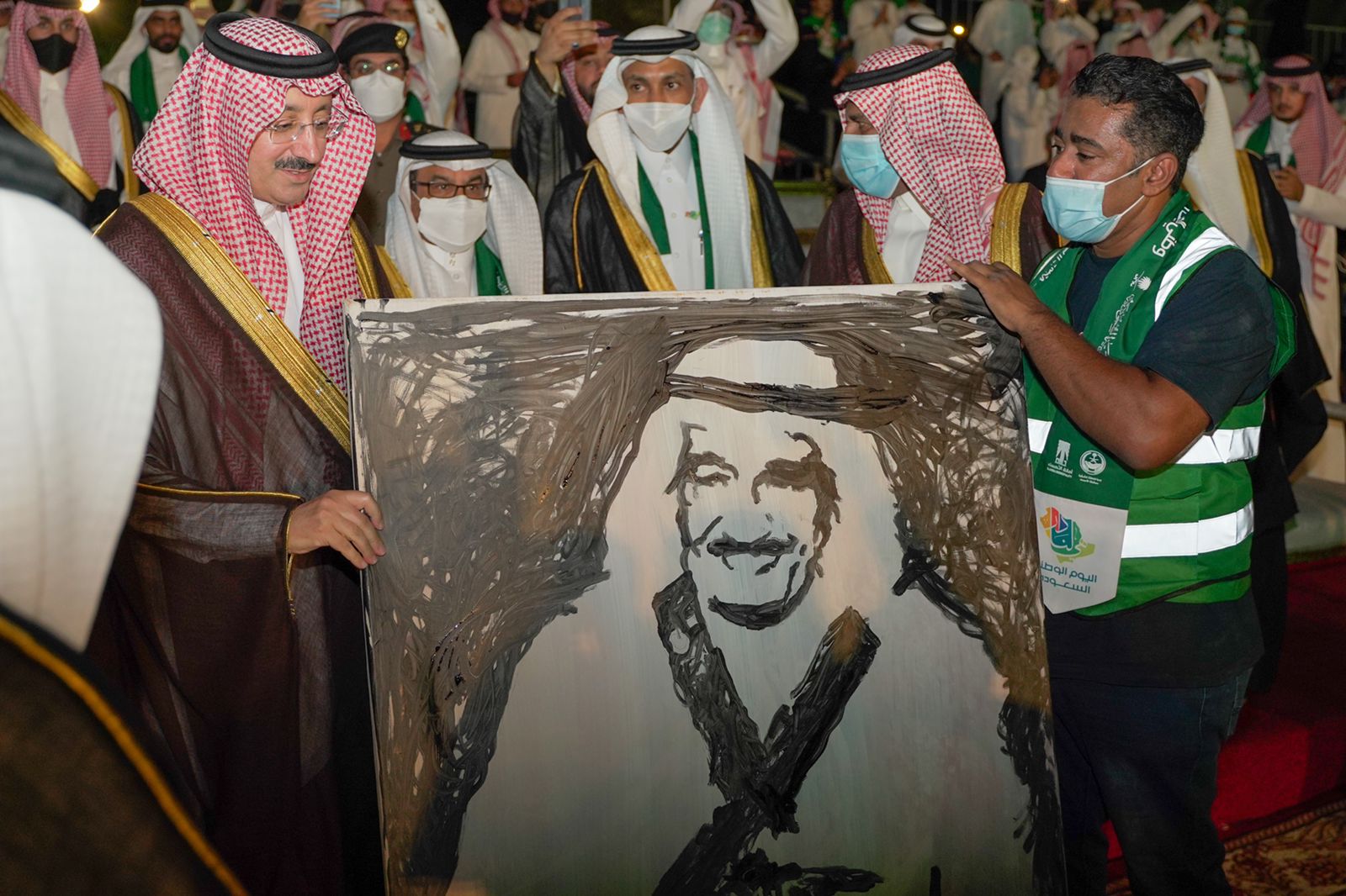 شارك التشكيلي حسين الخضيري برسم لوحة للملك سلمان بن عبد العزيز خلال فقرة ”الرسم المباشر“ ضمن فعاليات الاحتفال باليوم الوطني 91 في الأحساء تحت شعار ”هي لنا دار“.