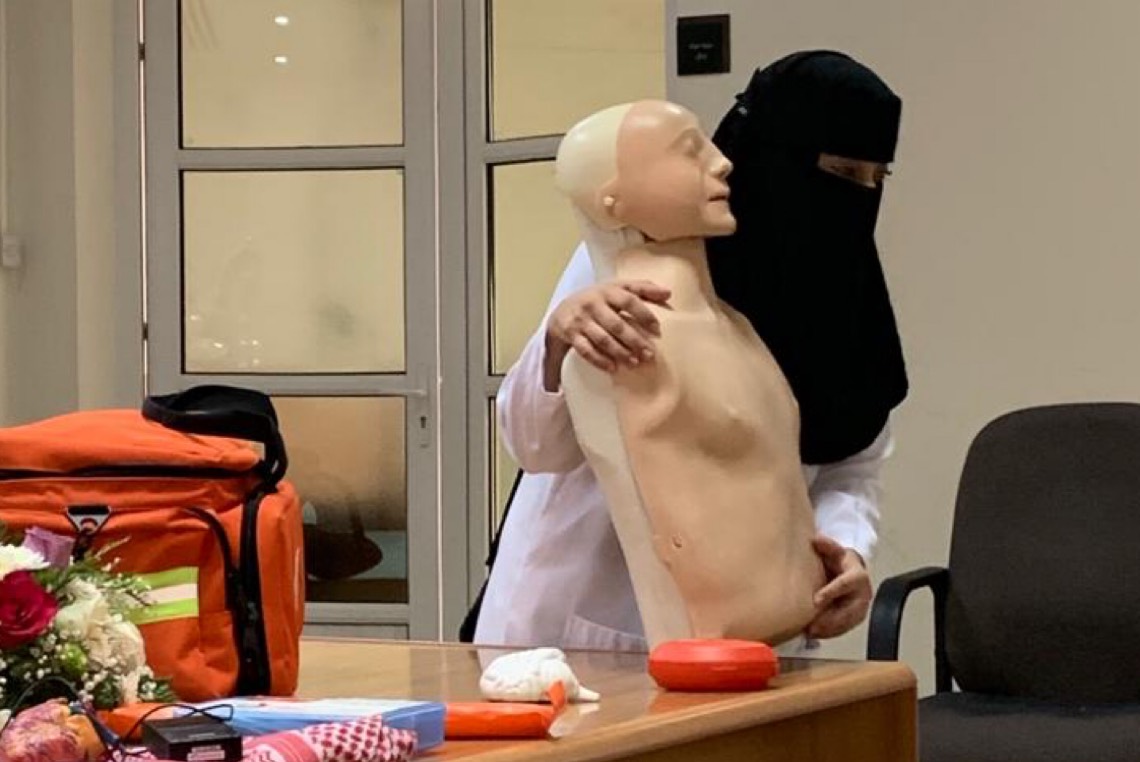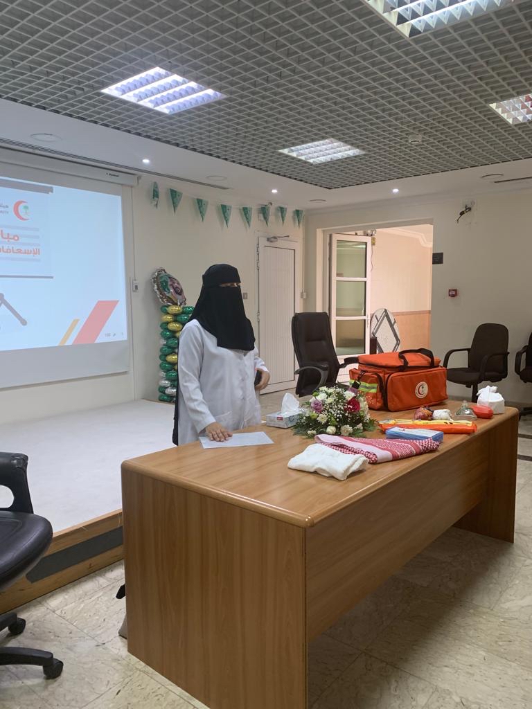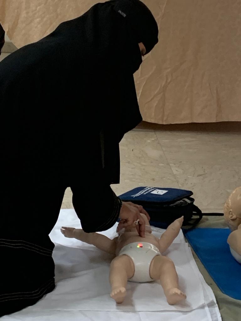 وتضمنت الدورة التي قدمها المدربان المعتمدان فيصل الزهران، وشريفة المبارك، على مقدمة عن أهمية الإسعافات الأولية، والتعرف على الرقم الإسعافي وكيفية طلب الخدمة الإسعافية في الحالات الطارئة، وطريقة استخدام برنامج أسعفني، إضافة إلى أهمية الرعاية القلبية ”الإنعاش القلبي الرئوي للبالغ والطفل الرضيع“، مع كيفية استخدام جهاز مزيل الرجفان البطيني.