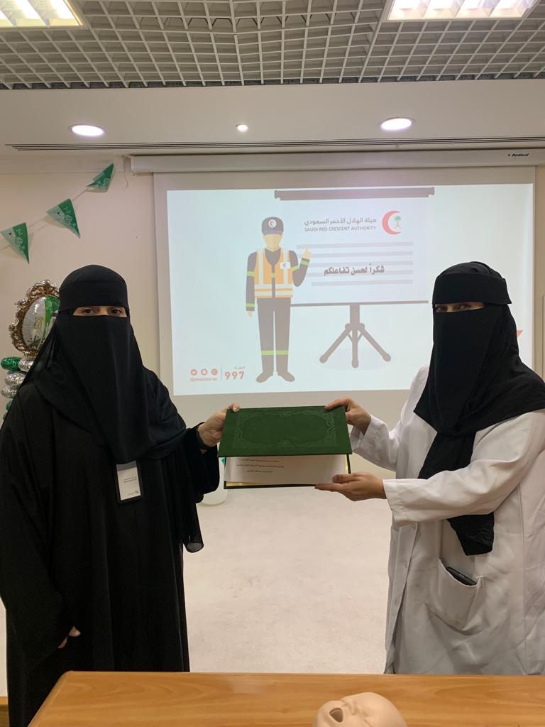 وفي ختام اللقاء كرمت مديرة إدارة الأسر الكافلة تغريد العسيري المدرب فيصل الزهراني، والمدربة شريفة المبارك، من برنامج سفير الحياة للإسعافات الأولية بالمنطقة الشرقية على تقديمهما هذه الدورات والمتحدث الرسمي للهيئة بالمنطقة الشرقية والمشرف على المعرض التوعوي فهد الغامدي.