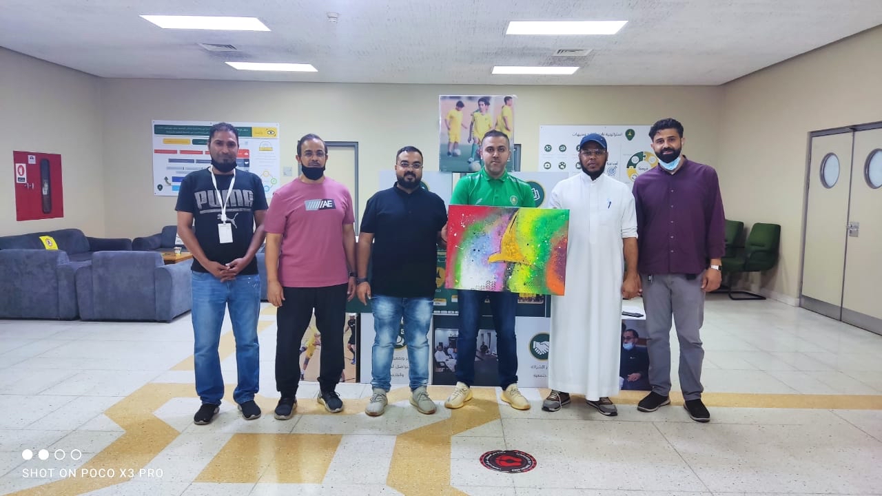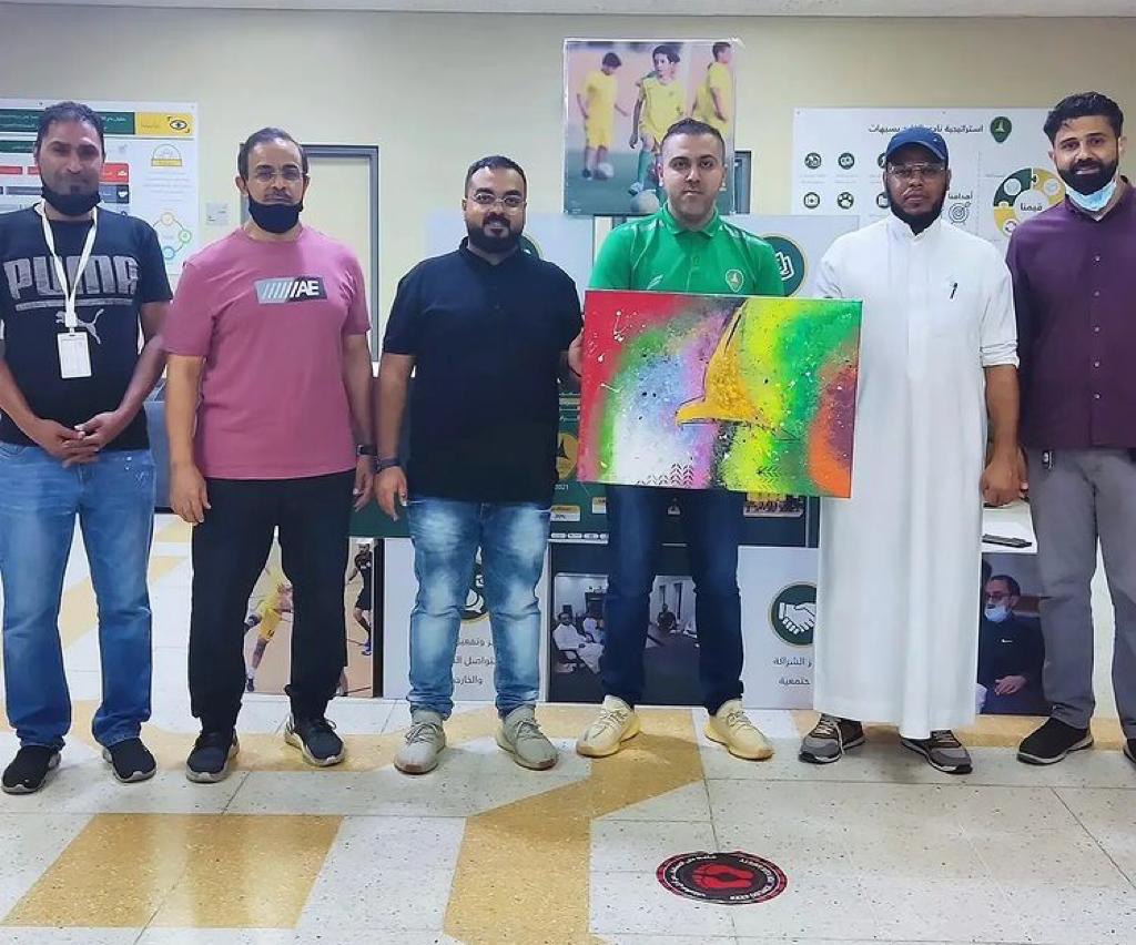 وتم إهداء النادي لوحة الفن التجريدي للفنانان محمد العلياني وعبد الله مسلم، والتي تضمنت شعار نادي الخليج.