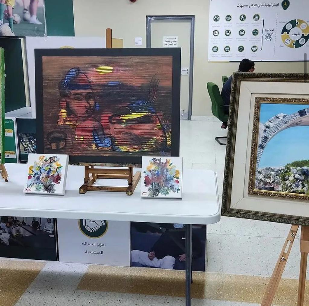 وكانت خاتمة الفعاليات بنادي الخليج بسيهات في الفترة من 26 وحتى 27 سبتمبر، حيث أقامت الجمعية عرضا لعدد من الوحات الفنية بمشاركة الفنان التشكيلي محمد المصلي، رئيس الجمعية، والفنان التشكيلي محمد العلياني، نائب رئيس الجمعية، والفنانات أمينة نقي، مواهب الجراش، منى الشيخ، فيء السنونه، زهراء النابود، والفنان عبدالله مسلم.