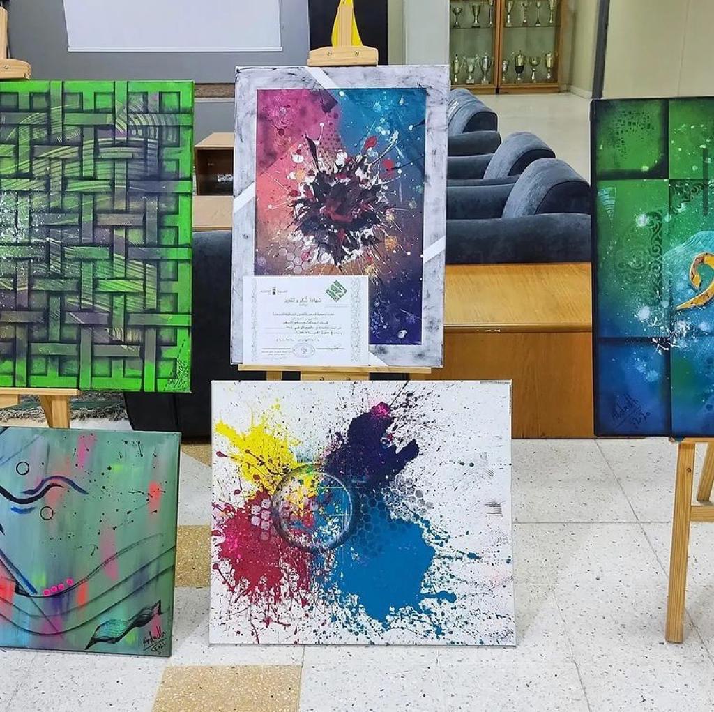 كما أقام الفنانان: محمد العلياني وعبد الله مسلم ورشة عمل لأساسيات الفن التجريدي.