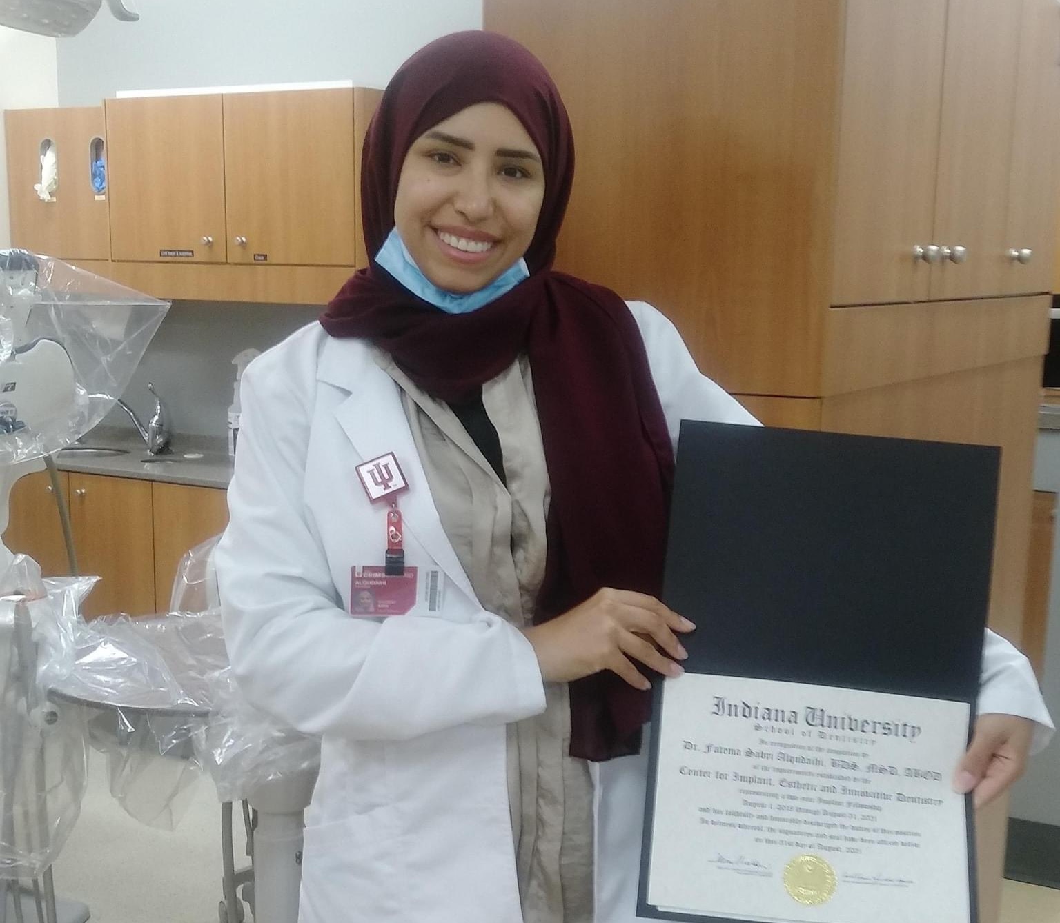 يذكر أن القديحي أنهت متطلبات التخرج بجامعة انديانا وعادت لأرض الوطن وحاصلة على شهادة التدريب السريري في اصلاح وتجميل الأسنان/2014 وشهادة الماجستير في علوم طب الأسنان/2015 وشهادة البورد الامريكي في اصلاح وتجميل الاسنان/2015 وشهادة الزمالة والتخصص الدقيق في زراعة الأسنان/2021.