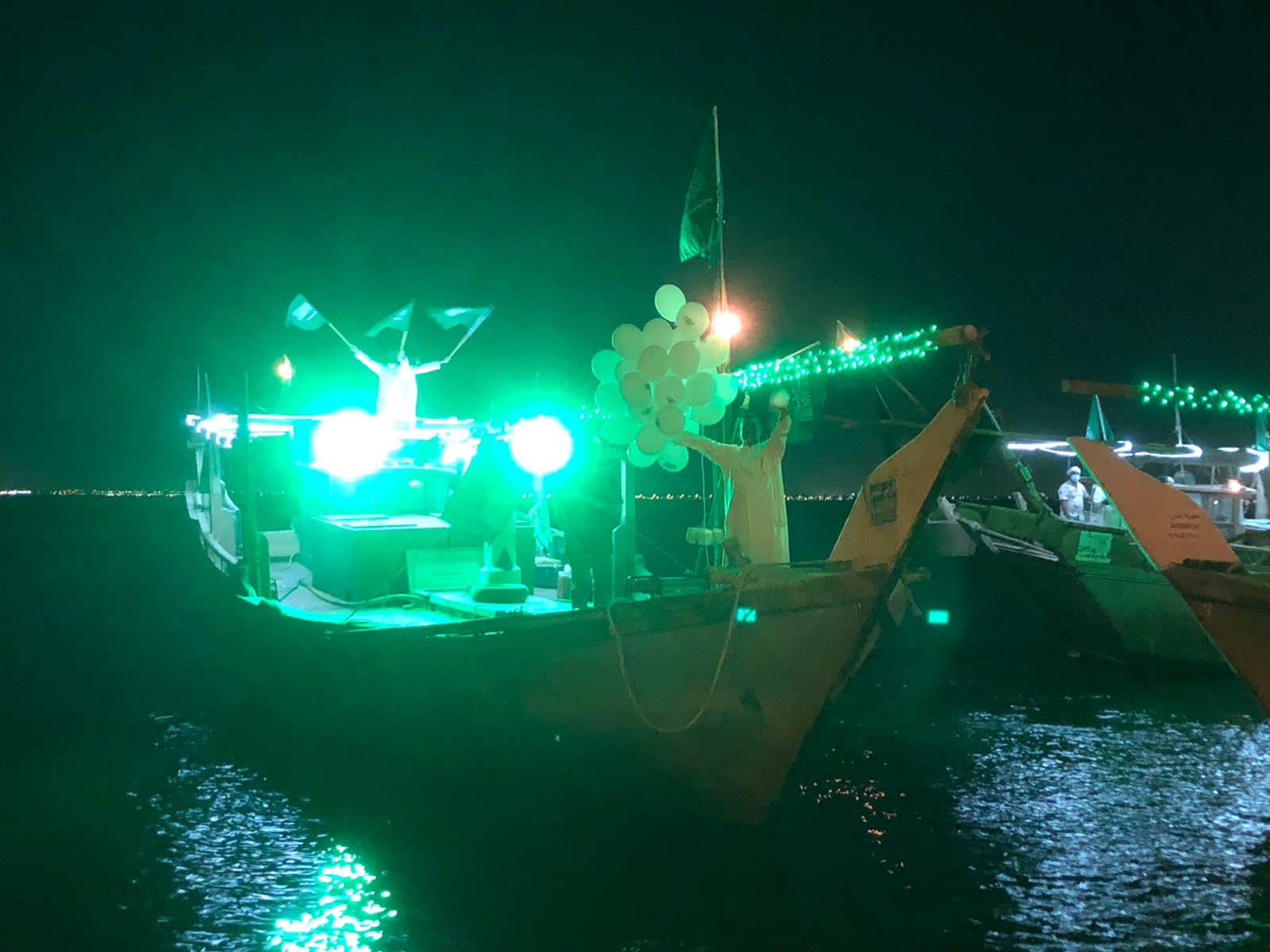 شاركت 3 قوارب بمحافظة القطيف، في فعاليات اليوم الوطني التي نظمتها بلدية المحافظة، بطريقتها الخاصة بكورنيش القطيف، إذ أطلقت 1000 بالونة كتعبير عن فرحة الوطن.