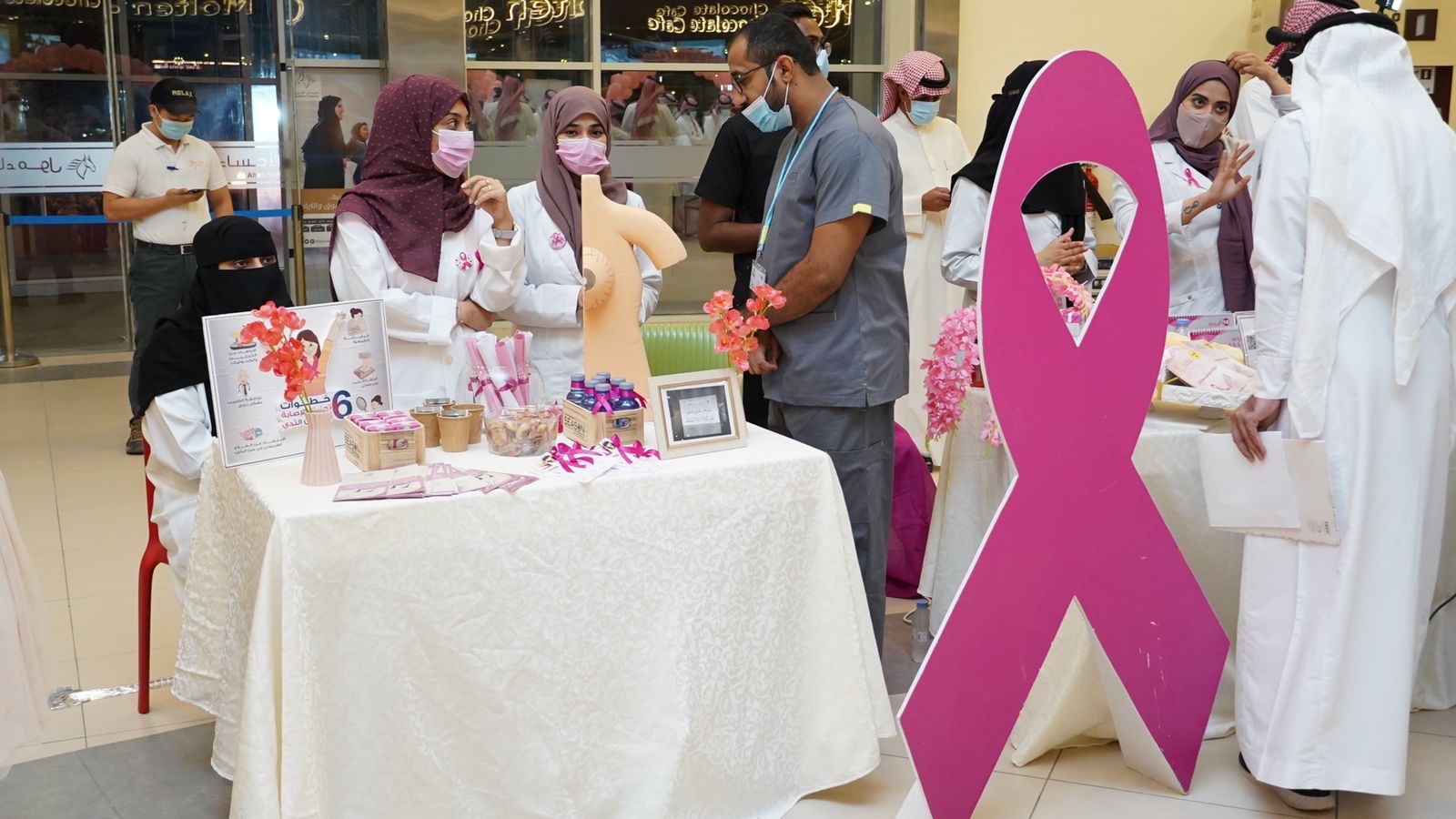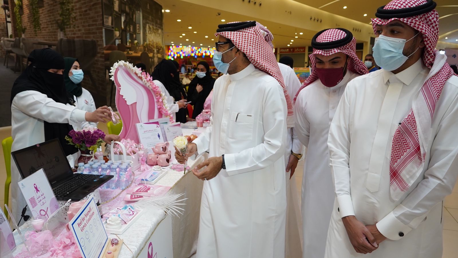 يُذكر أن الفعالية تستمر لمدة ثلاثة أيام وتشمل 16ركناً توعوياً، ومن المقرر أن مواصلة الحملات التوعوية عن سرطان الثدي خلال هذا الشهر في عدة مواقع ميدانية إضافة لمدارس الطالبات.