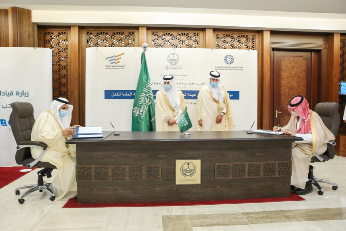 وخلال الاجتماع وقع الأمير أحمد بن فهد بن سلمان بن عبدالعزيز نائب أمير المنطقة الشرقية نائب رئيس مجلس إدارة هيئة تطوير المنطقة الشرقية اتفاقية تعاون بين هيئة تطوير المنطقة الشرقية والهيئة العامة للنقل التي مثلها في التوقيع معالي رئيس الهيئة العامة للنقل الدكتور رميح الرميح.
