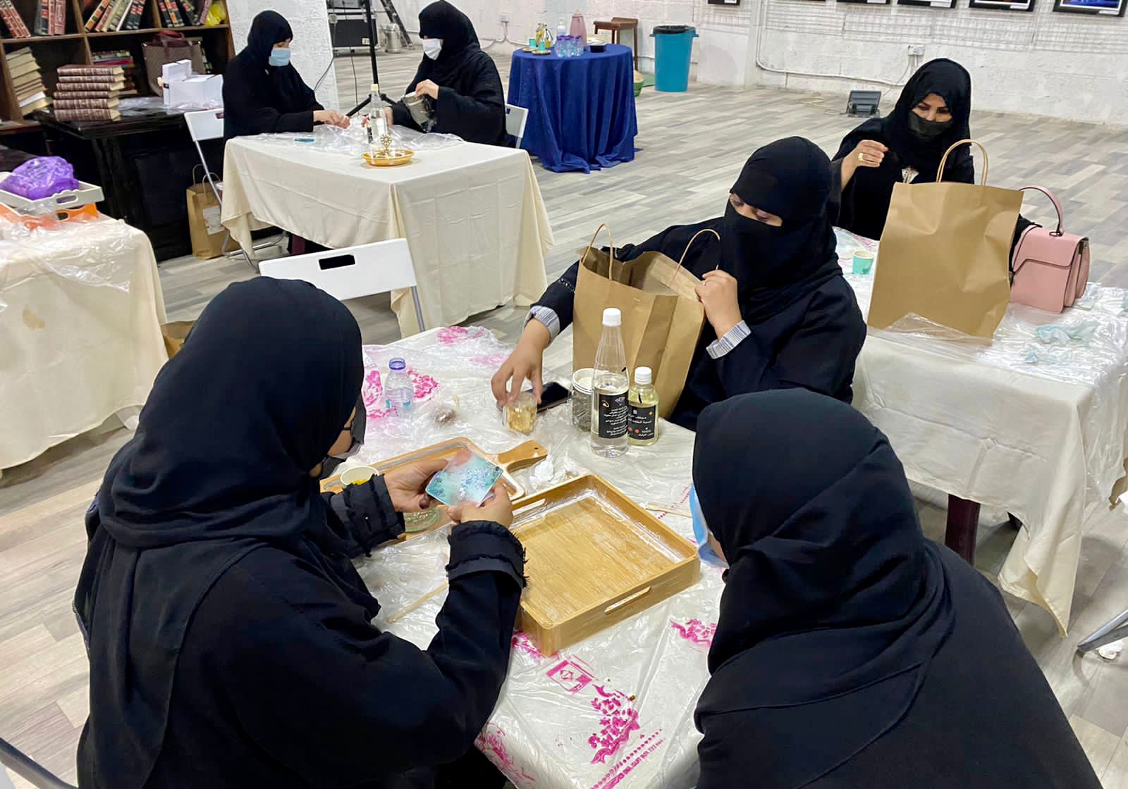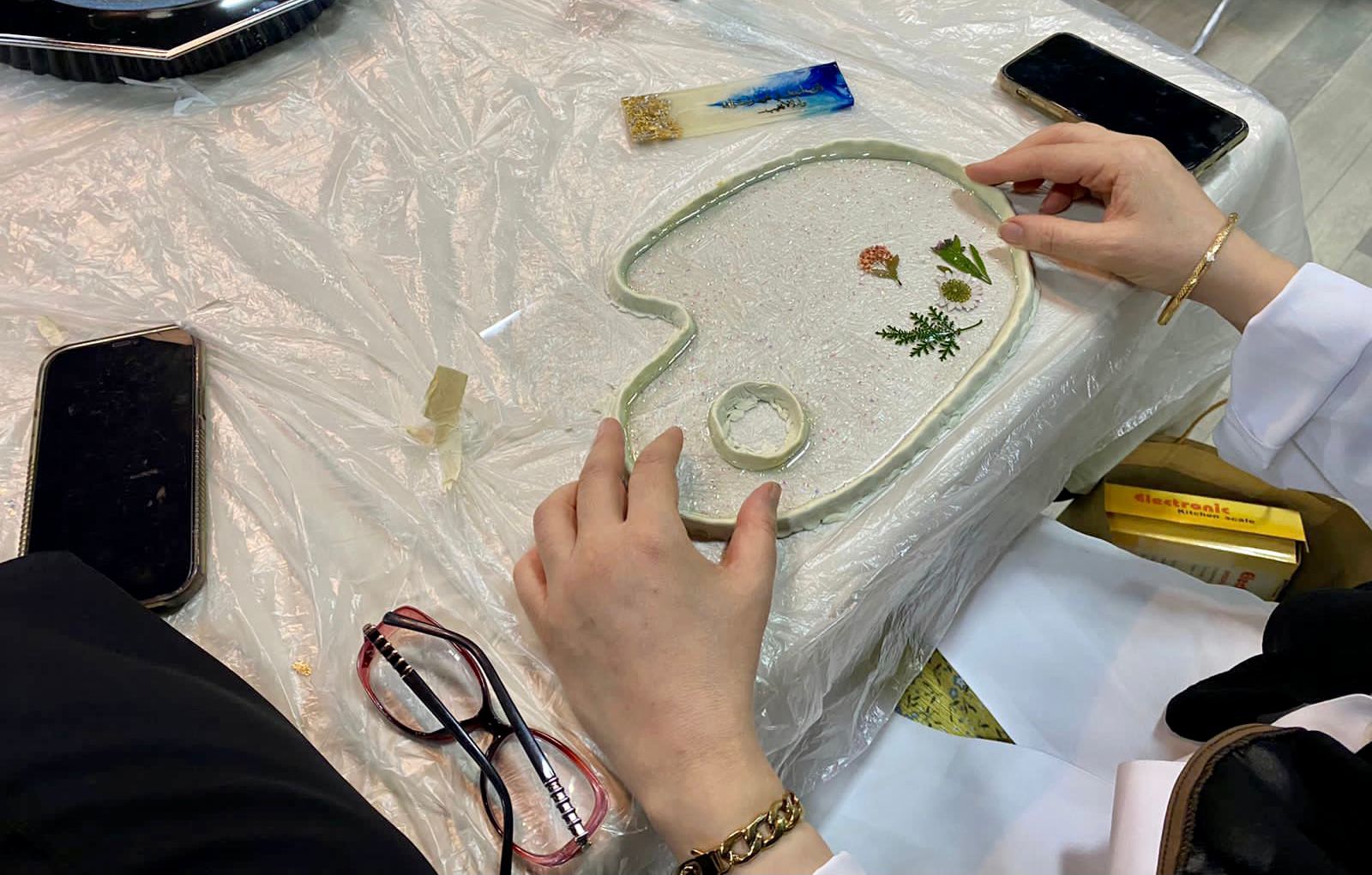 وبينت المشرفة على البرنامج الفنانة التشكيلية سلمى الشيخ بأن محاور الورشة ارتكزت على التعرف على مادة الريزن والتدوات والخامات والقوالب الخاصة به والتقنيات المختلفة لصب الريزن والمكملات والاضافات والاكسسوارات.