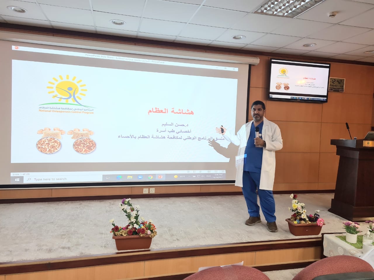 وشملت الفعاليات محاضرة القاها اخصائي طب الأسرة الدكتور حسن السليم منسق البرنامج الوطني لهشاشة العظام بالاحساء.