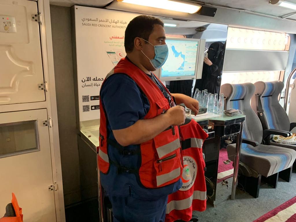 وصاحب الدورة حافلة المعرض التوعوي التثقيفي التي تحتوي على دمى تدريبية ونموذج للأجهزة الطبية الحديثة المستخدمة في العمل الاسعافي وشرح آلية عمل المسعفين بشكل ملموس؛ والذي كان له الأثر الإيجابي والممتع للمتدربين.