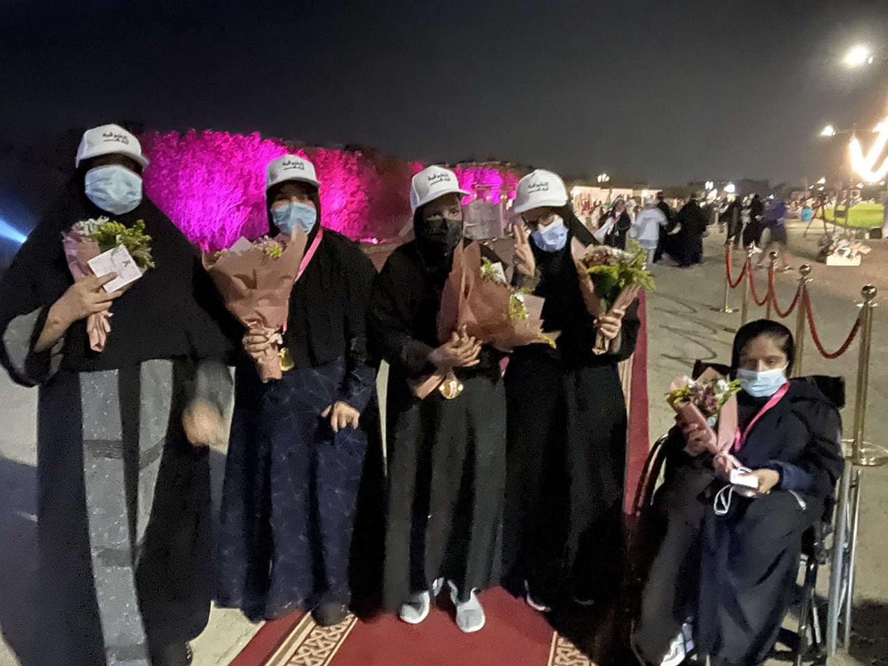وتُعد هذه المشاركة هي الأولى من نوعها لمستفيدات المركز، وقدمت مديرة المركز عائشة المزيد مباركتها للمستفيدات على فوزهن شاكرة المدربات في فريق نادي الإعاقة بالمنطقة الشرقية على جهودهم المبذولة لتدريب المستفيدات في النادي على العديد من الألعاب الرياضية والمشي واحدة منهم.