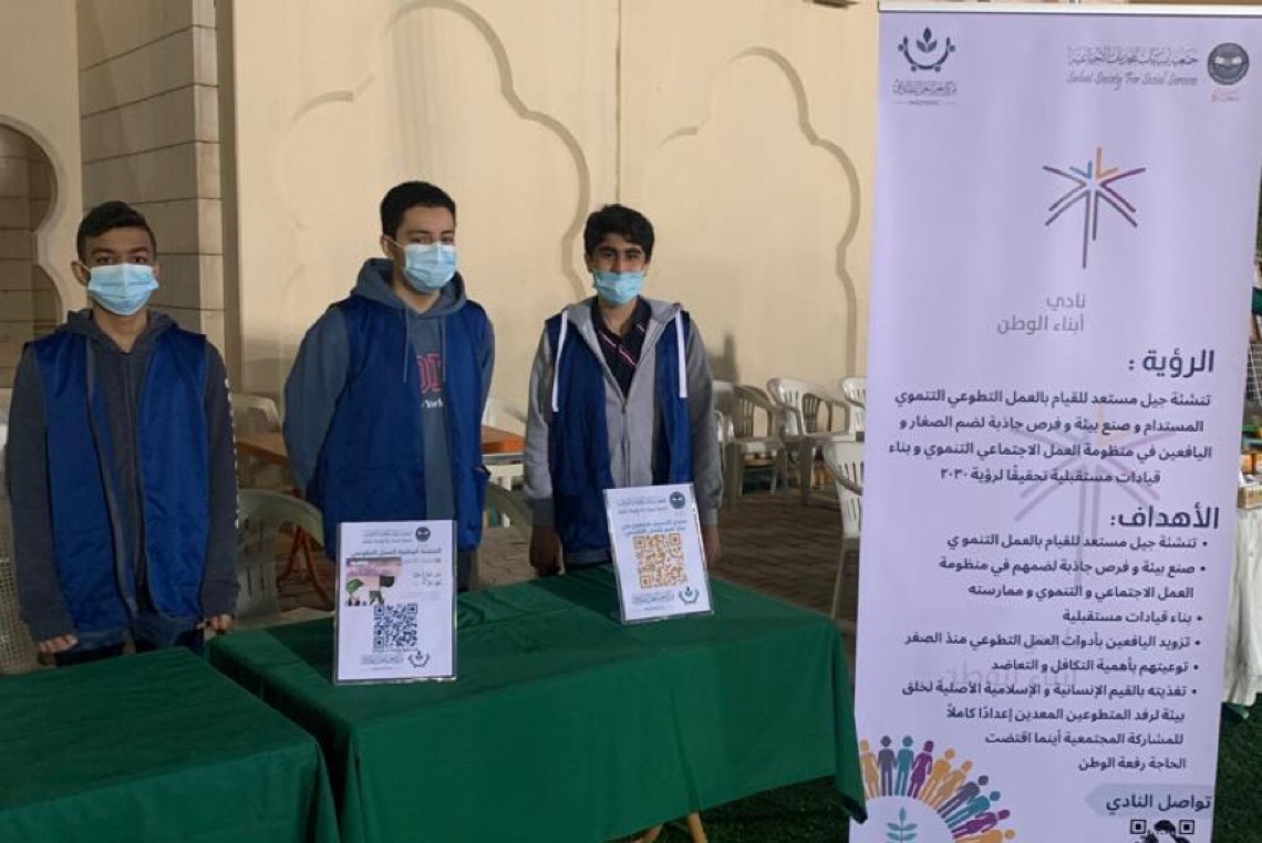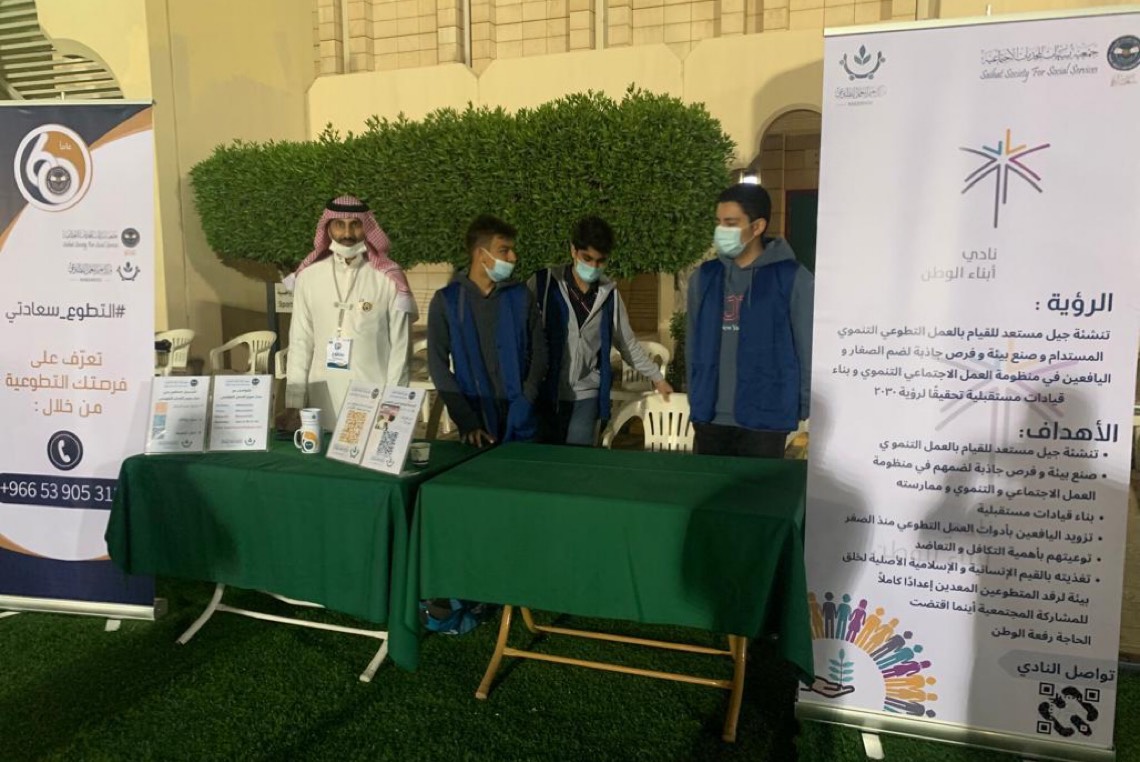 بدورها قالت المشرفة على نادي أبناء الوطن ”زهراء اليوسف“: ”نحنُ نهيأ الشباب ليكونوا قيادات متواجدين في جميع المحافل، حيث تحدثوا إلى الجمهور عن هدف النادي وهو تعزيز معنى العمل التطوعي وأهميته بالنسبة للأطفال والناشئة وكيفية الانضمام إلى النادي“.