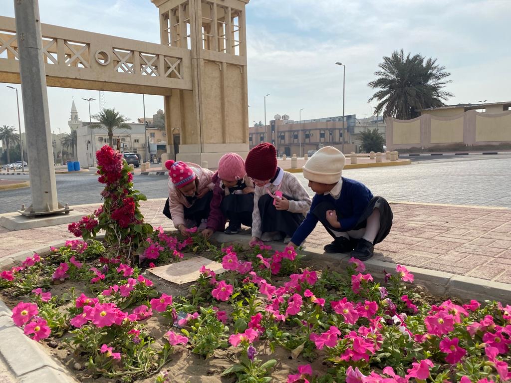 بالصور.. 300 طالب يزرعون 16 ألف زهرة موسمية بالقطيف