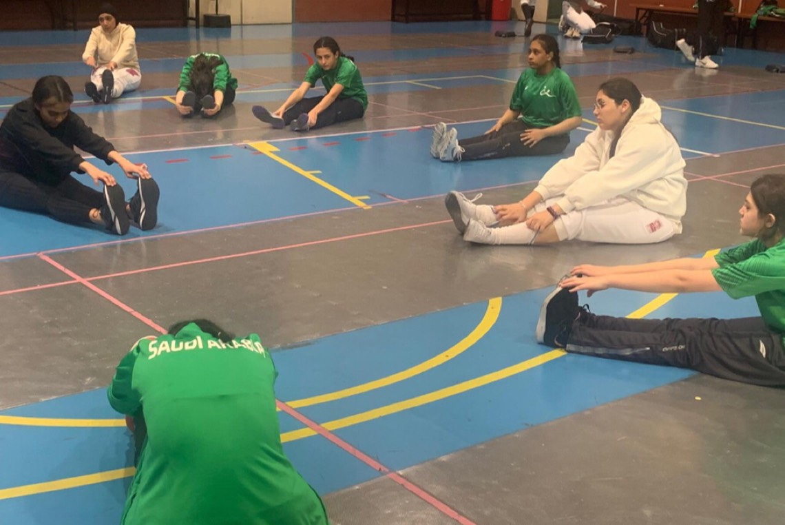 وأجرى المنتخب السعودي للسيدات أولى تدريباته في الصالة الرياضية بأكاديمية اسباير في العاصمة القطرية الدوحة، بمشاركة 10 لاعبات وهن لين الفوزان وآية عمّار وياسمين الصبان وأناهيد الخيبري ”سلاح الشيش“ ودانة القاسم وضي العميري وليلى فراس وجنى القضماني وفوزية الخيبري ويارا الفرائضي ”سلاح الأبيه“.