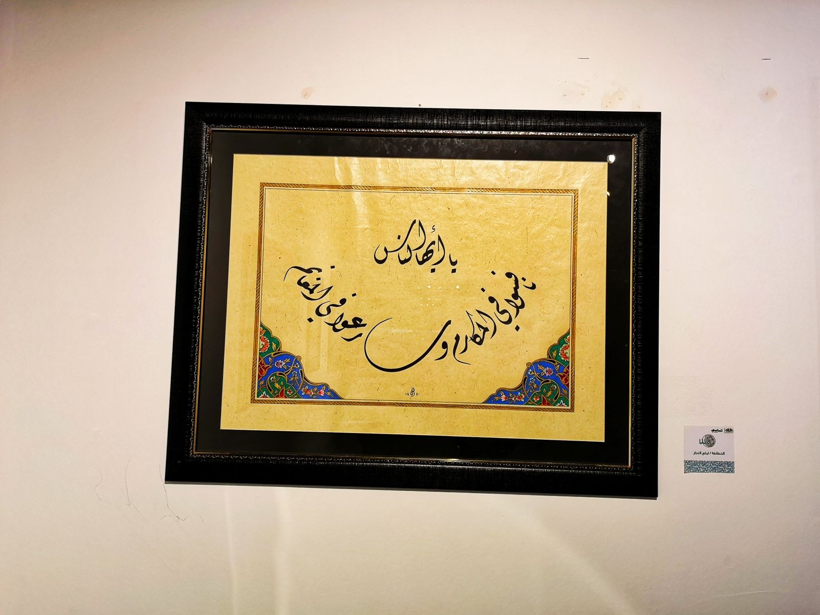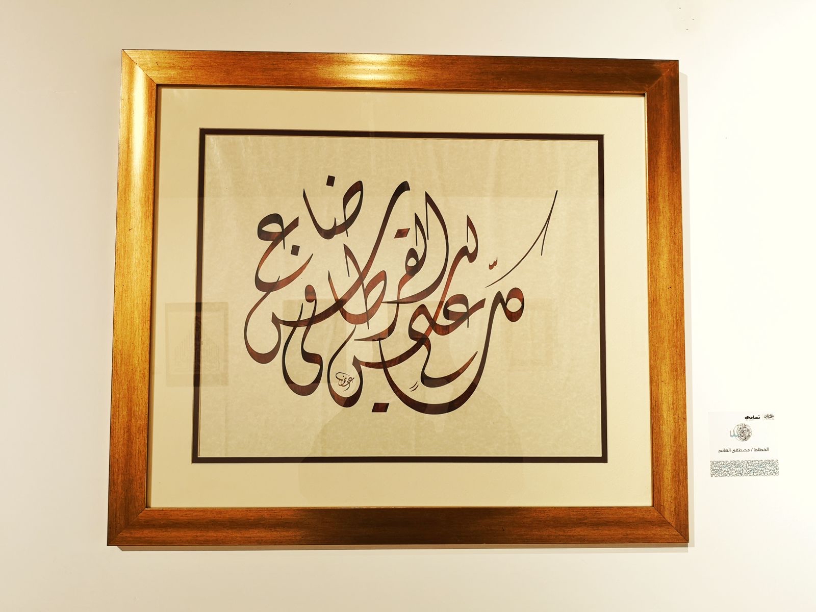 أما الخطاط مصطفى الغانم قدم لوحتين بالخط الديواني الغزلاني المصري ”ثم إليَّ مرجعكم....“ بالأسلوب السيفي استفاد فيه من تتابع الكافات، والأخرى ”كلّ علم ليس في القرطاس ضاع“.