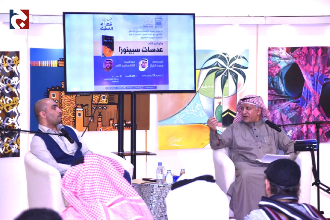 وعانقت منصة شعراء القطيف المشهد الشعري بحفل لتوقيع كتاب ”عدسات سبينوزا“ للشاعر محمد الخباز وذلك بالشراكة مع جمعية الثقافة والفنون بالدمام.