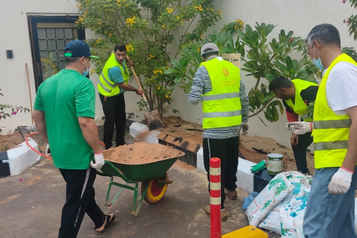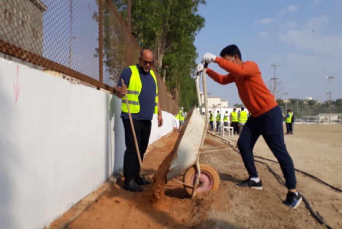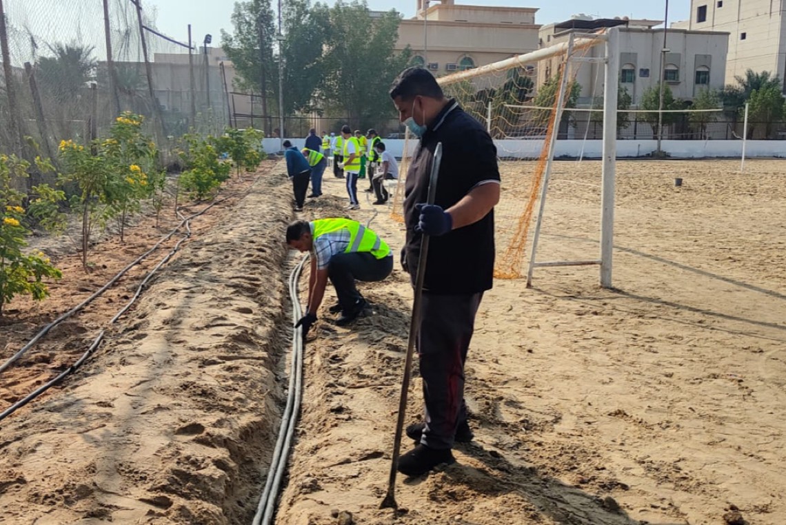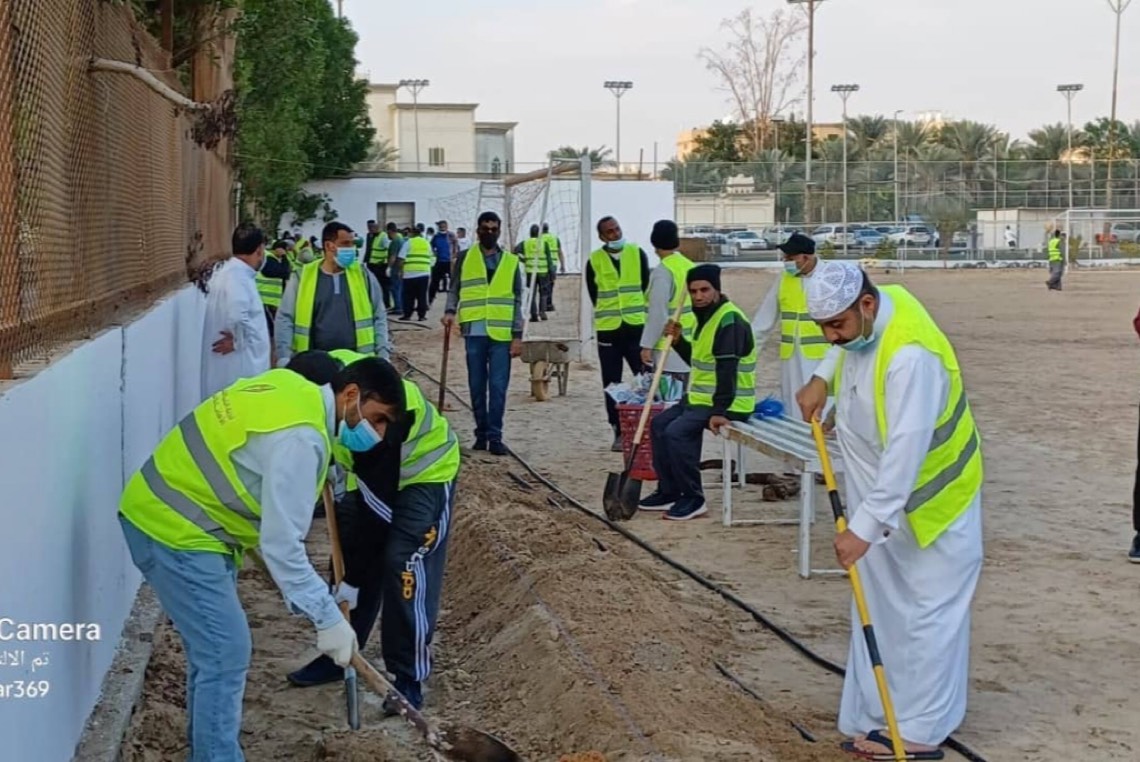 وقام المتطوعين بحفر وتجهيز الأحواض الزراعية على امتداد جوانب الملعب واضافة التربة الزراعية والأسمدة، حيث سيصل مجموع الأشجار المزروعة إلى حوالي 250 شجرة وأكثر من 5000 زهرة.