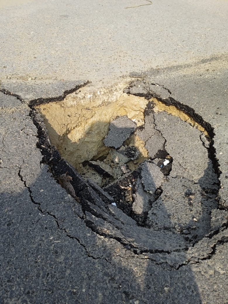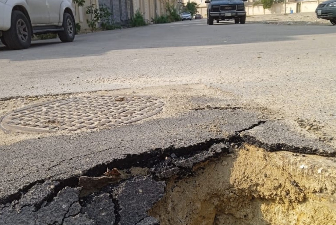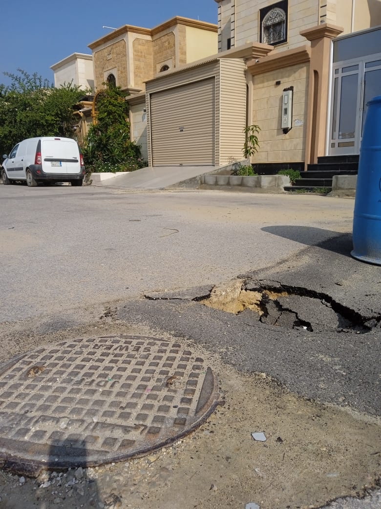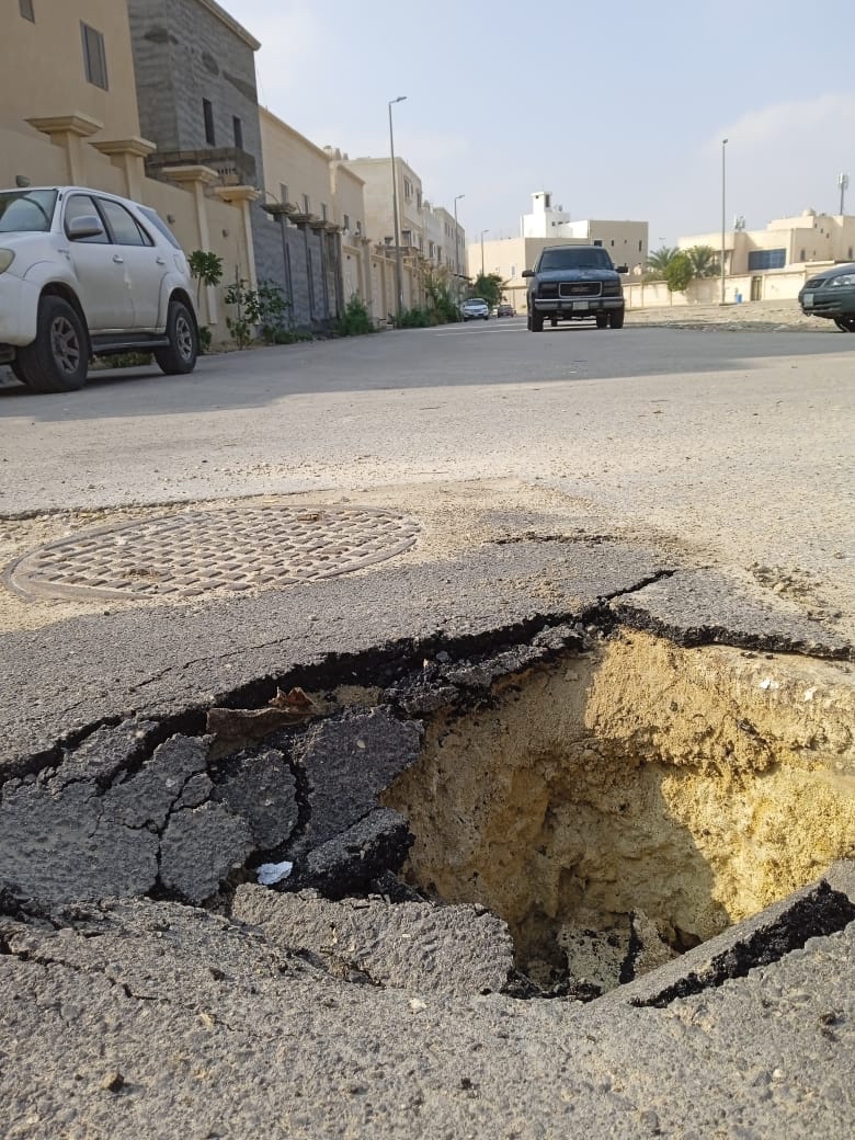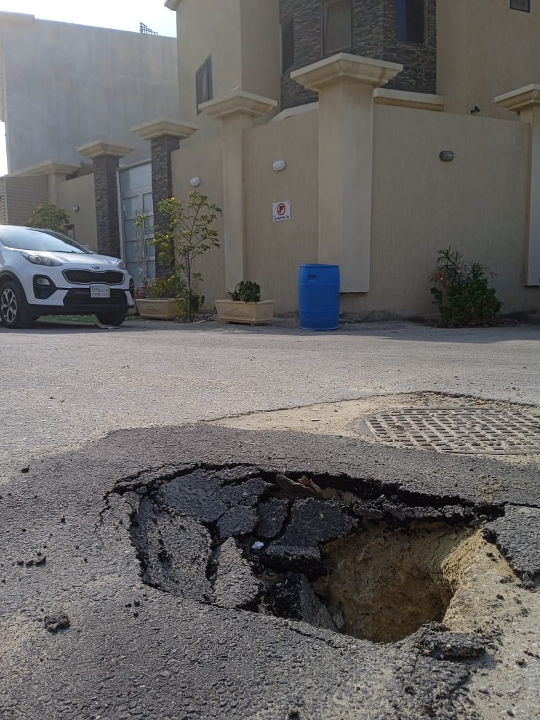 وأضاف: الحفرة نتيجة تمديد صرف صحي لأحد المنازل مما يعيق حركة مرور السيارات بالشارع وسلامة المارة.