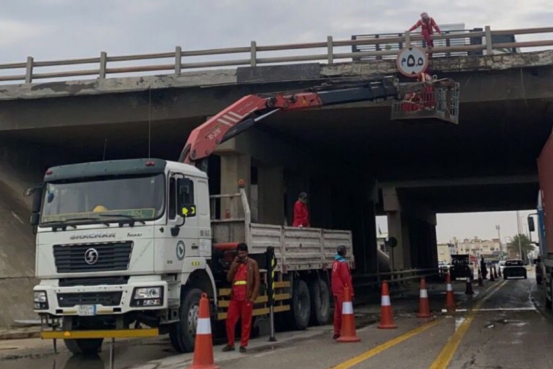 وجه فرع وزارة النقل والخدمات اللوجيستية بالمنطقة الشرقية مقاول الصيانة بإزالة جميع أجزاء الغطاء الخرساني المنفصلة عن جسر تقاطع طريق صفوى أم الساهك مع طريق الظهران الجبيل، وعمل الإصلاحات اللازمة لها، وذلك عقب تساقط أجزاء منها.