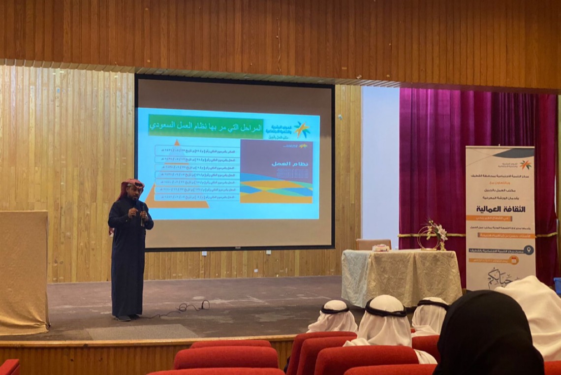 نظم مكتب العمل بمحافظة الجبيل ورشة عمل ”الثقافة العمالية للقطاع غير الربحي“ بالتعاون مع مركز التنمية الإجتماعية بمحافظة القطيف.