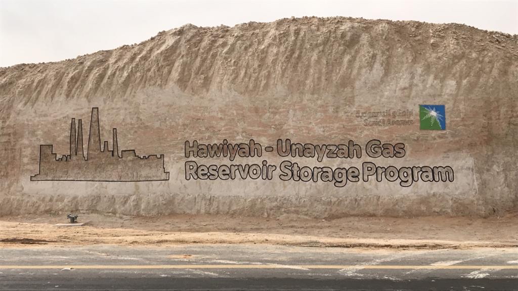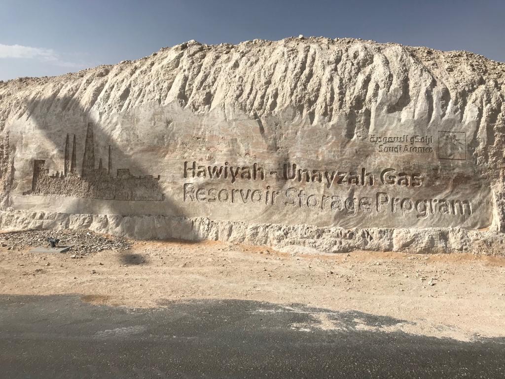 حوّل النحات حيدر العلوي، الواجهة الصخرية لمشروع ”الحوية“ بارامكو لشكل فني وجمالي، وأعد نحتًا غائرًا في صخرة طبيعية أمامية في منطقة تقع بعد الأحساء على مشارف الربع الخالي في مشروع ”الحوية“ لتخزين الغاز.