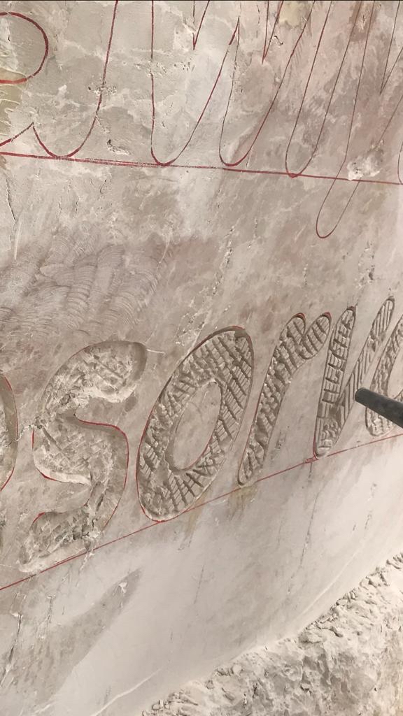 وتابع أنه بعدها تم تحديد جميع الخطوط الخارجية بقطعها بالدسك للداخل «غائر»، ثم تم تشريح العناصر المحدده من الداخل باستخدام لقراندر الصغير.