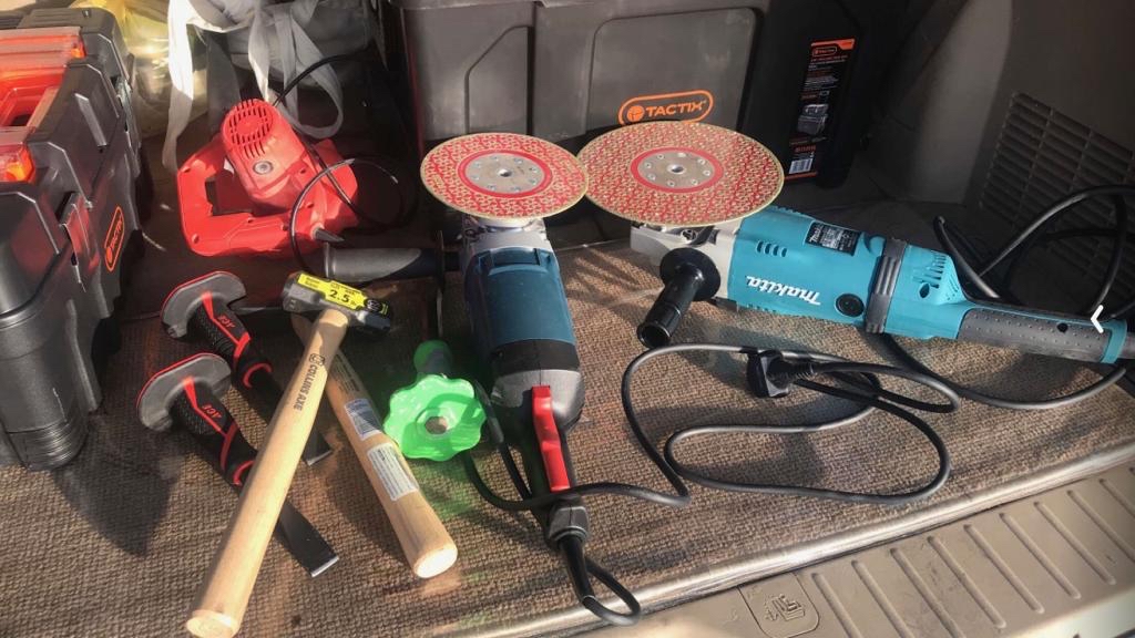 وتابع أنه استخدم في المشروع الذي استغرق ثلاثة أسابيع، عدة النحات التي يستخدم فيها أجهزة كهربائية وبعضها يدوي مثل أنواع وأحجام القراندرات، بالإضافة إلى دسكات للقطع من برادة الألماس والازاميل والمطارق اليدوية.
