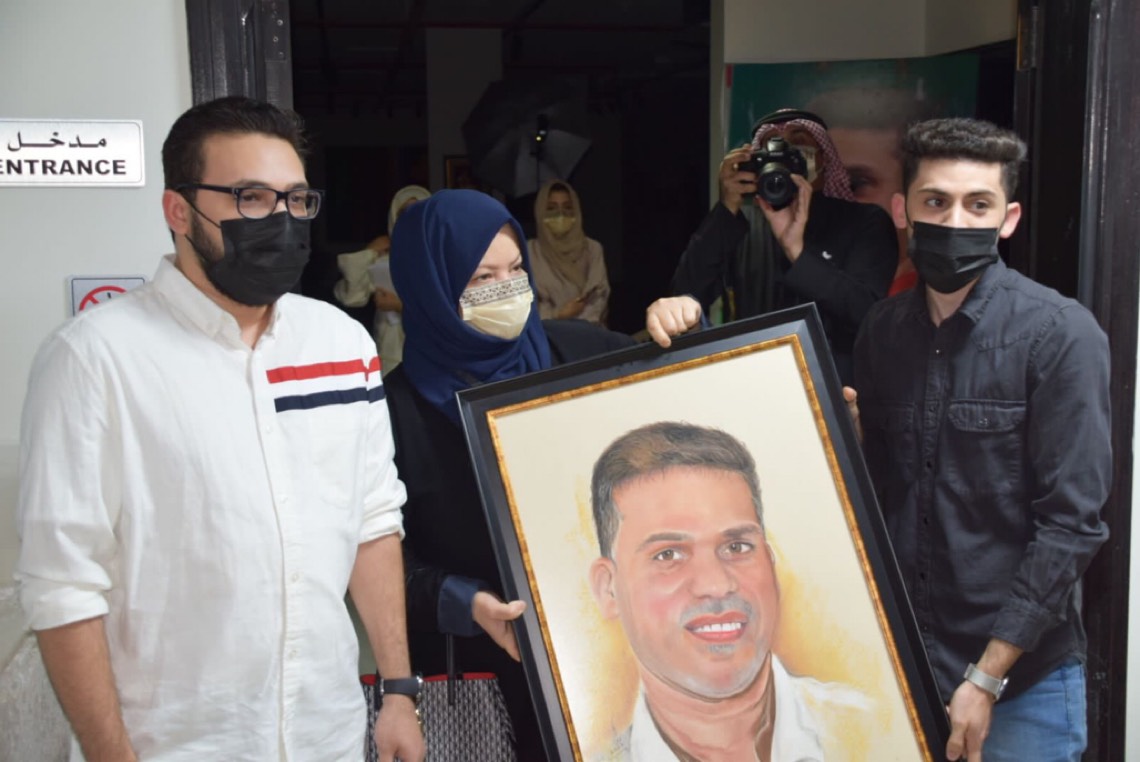 أهدت الفنانة التشكيلية منى السيهاتي، عائلة المرحوم محمد الحمران، لوحة فنية رسمت فيها صورته.