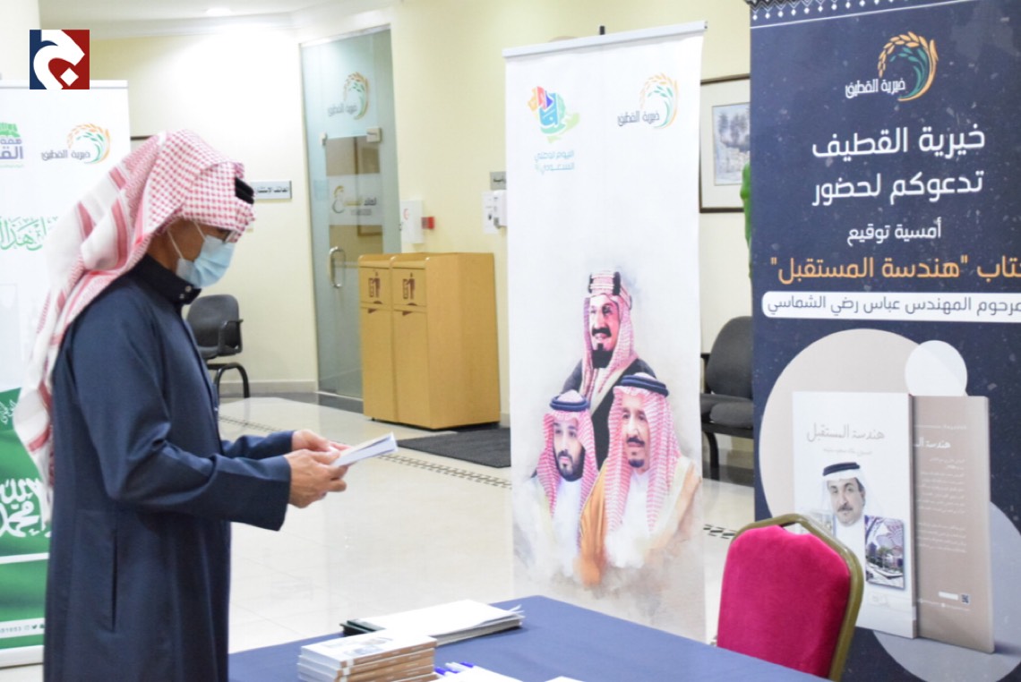 والقى رئيس مجلس الادارة منير القطري كلمة جاء فيها ”نلتقي هذه الليله لـ توقيع كتاب «هندسة المستقبل»، للمرحوم العزيز ابو فاضل ولكنها بالنسبه لنا في خيريه القطيف“.
