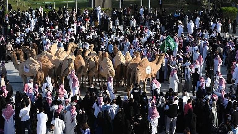 في مشهد مهيب، أطلّت مسيرة الإبل التي أطلقها مركز الملك عبد العزيز الثقافي العالمي «إثراء»، احتفاءً بيوم تأسيس المملكة العربية السعودية بالتعاون مع نادي الإبل، حيث احتشد آلاف الزوار مترقبين مسيرة موكب مهيب يعكس عراقة وأصالة المملكة التاريخية وسط حديقة «إثراء»، فيما تفاعل الزّوار مع العرضة السعودية التي تقدمت المسيرة، بالغناء والتصفيق احتفاءً بدخول «نخبة النوادر المنقية».