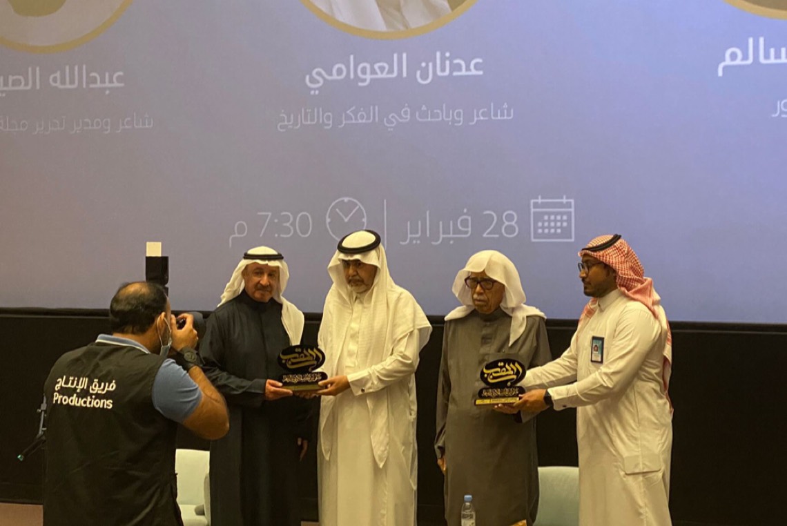 وفي ختام الأمسية كرم رئيس ملتقى ابن المقرب الأدبي أحمد اللويم، ومسؤول الأنشطة بمركز إثراء معاذ صقر، الشاعرين الكبيرين.