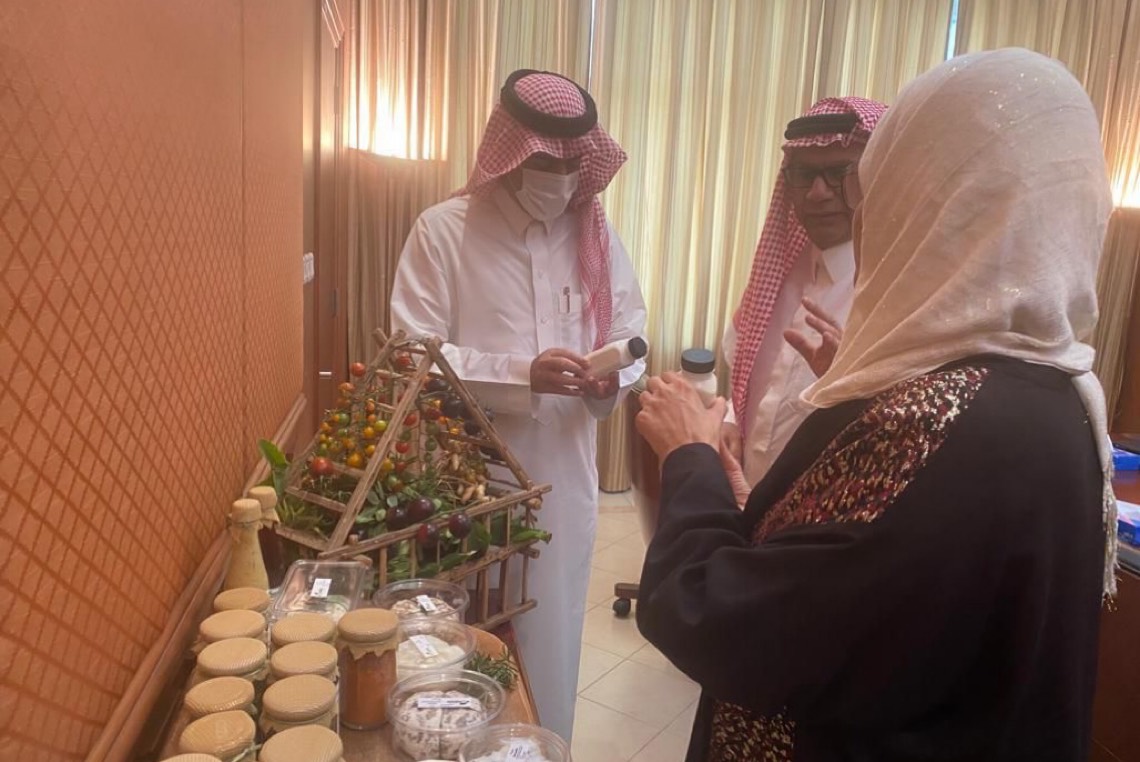 واستمع المحافظ إلى عرضٍ مرئي وحيٍّ عن جانب من مسيرة هذه المواطنة التي قررت بعد تقاعدها من وظيفتها في شركة أرامكو أن تتجه، لمجال تصنيع الأجبان الطبيعية، والأغذية عبر مصنع صغير كان في منزلها لتنتقل لمصنع أكبر في مزرعتها التي تضم المئات من المواشي، وعشرات المحاصيل الزراعية حاليًا، وصولًا لامتلاكها لمصنع خيري متكامل للأجبان.