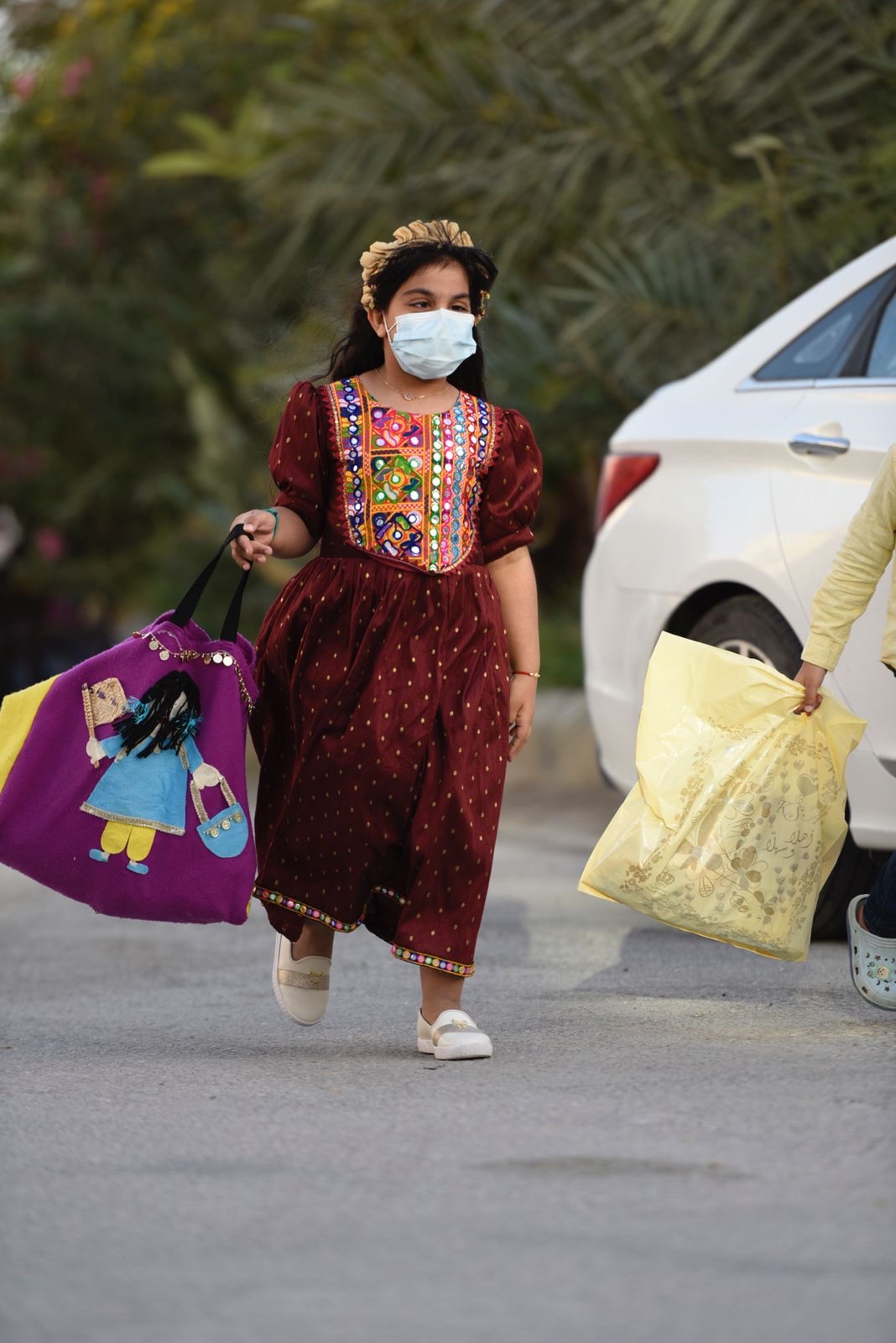 ورصدت ”جهينة الاخبارية“ حشود المحتفلين الذين غلب عليهم النساء والأطفال في أجمل حللهم وهم يتنقلون بين المنازل يتلقون الهدايا والحلويات.