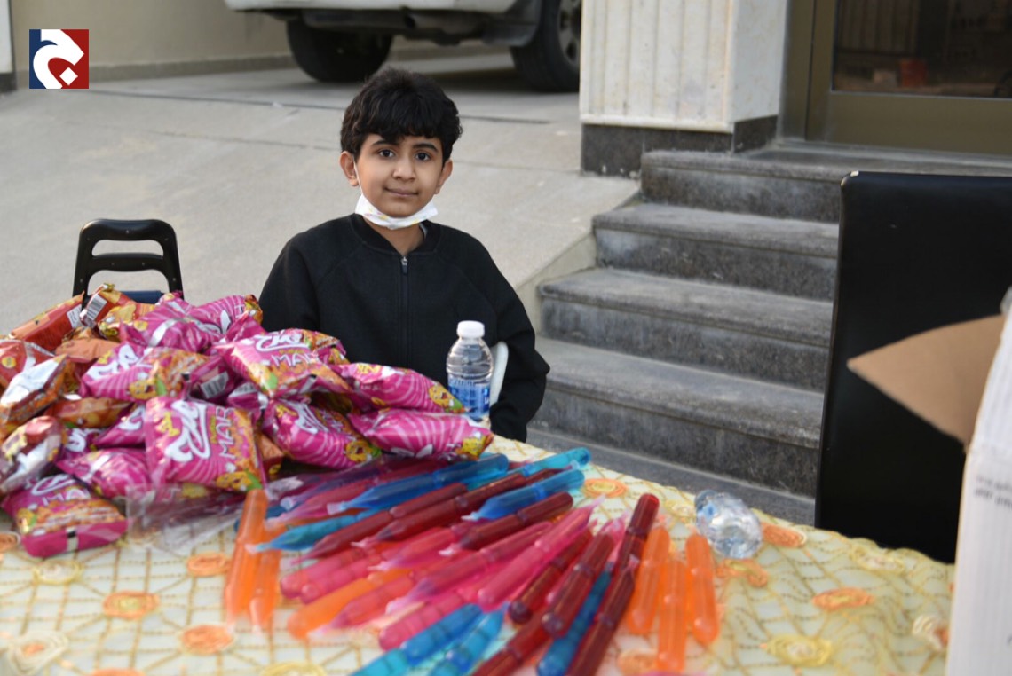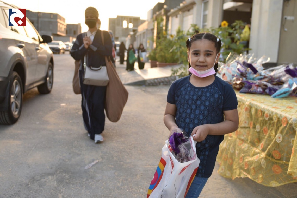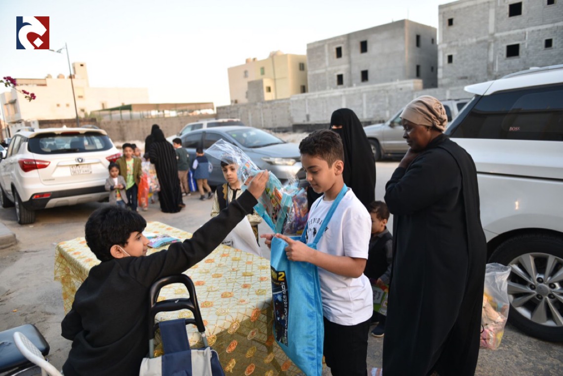 وانتشر الأطفال المتزينين بالثياب الخاصة بالقرقيعان وهم يحملون الأكياس مارين بمنازل الأقارب والجيران لجمع الهدايا والحلويات وهم يرددون بصوت مسموع ”ناصفة حلاوة اعطونا الله يعطيكم“.